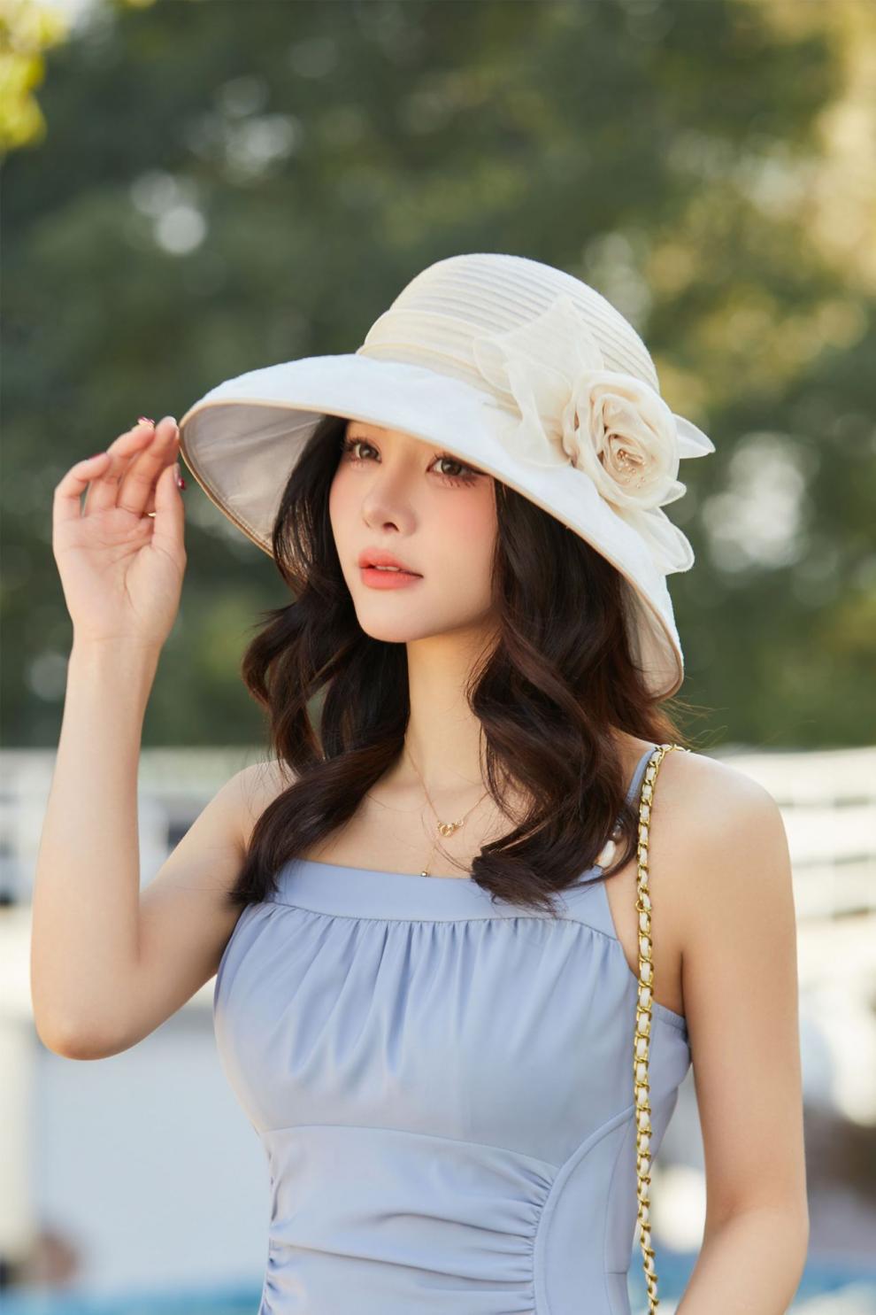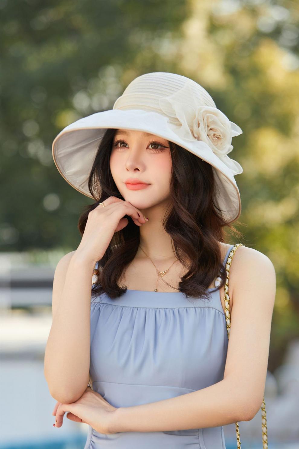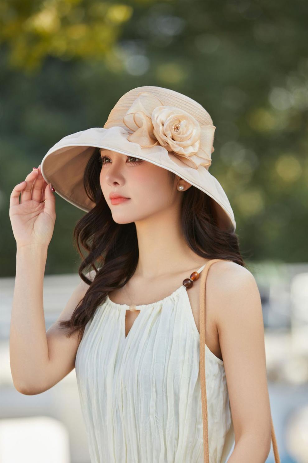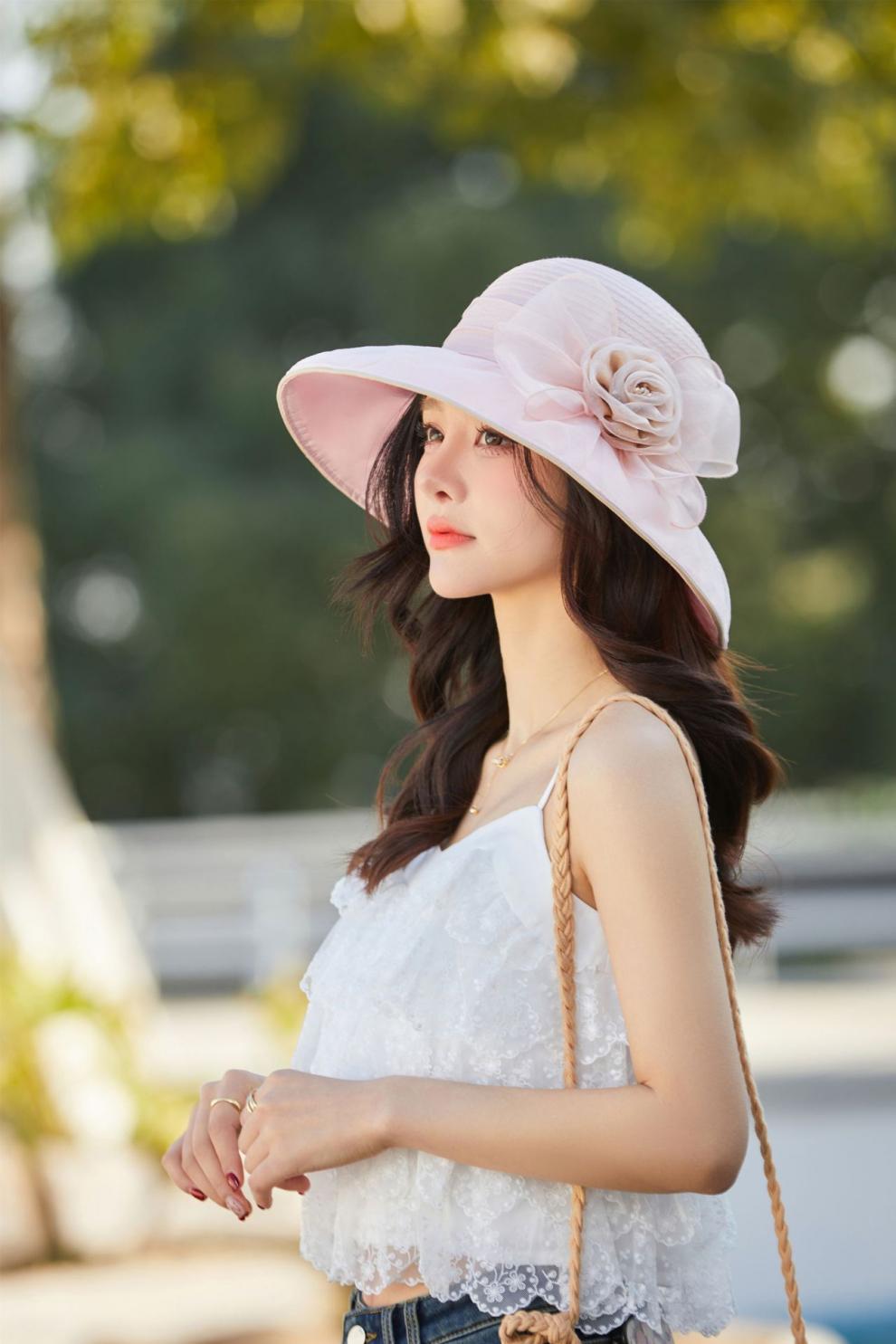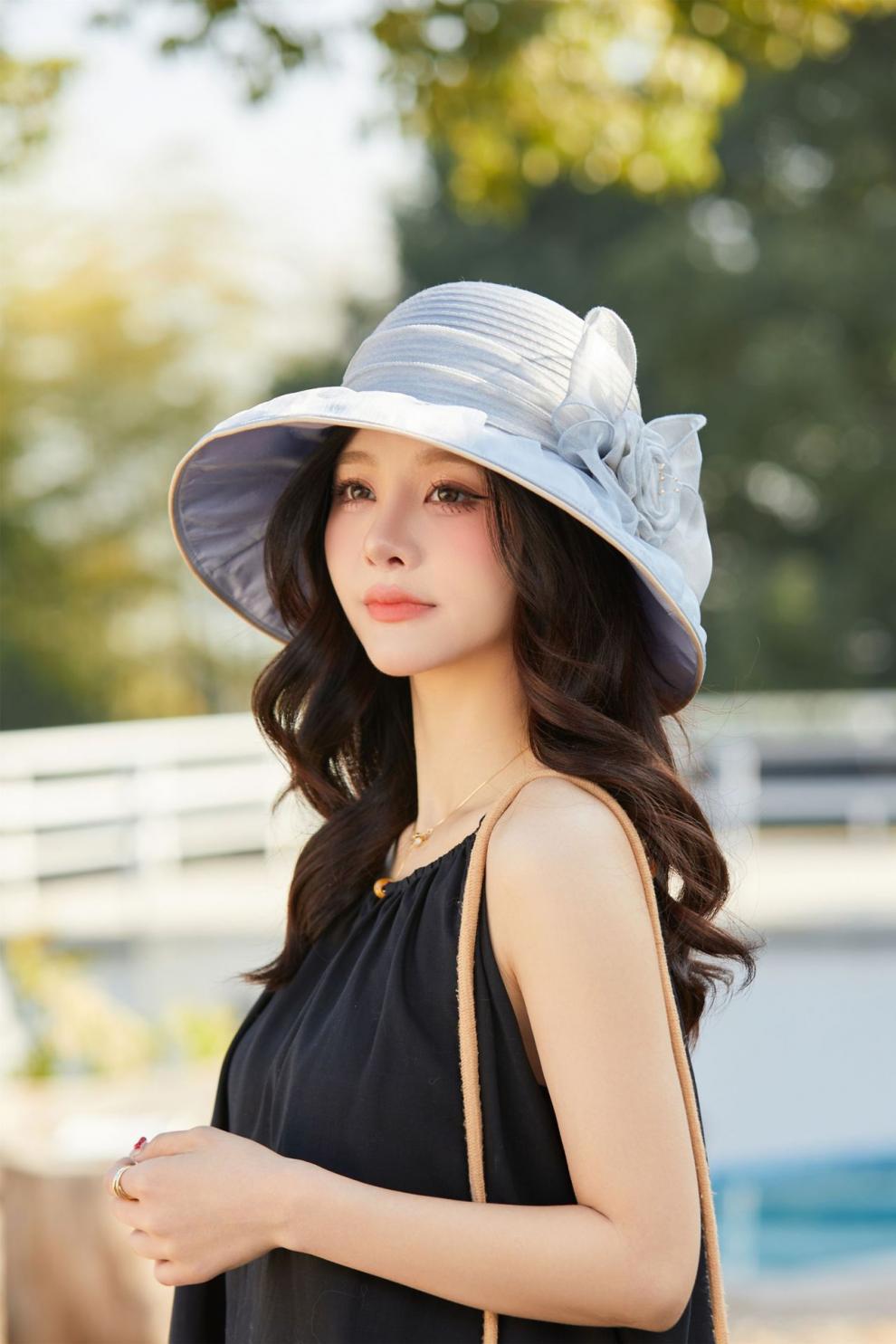 英倫風盆帽春夏の新型日焼け止め花レース日よけ帽ファッション優雅フランス式中高年帽子