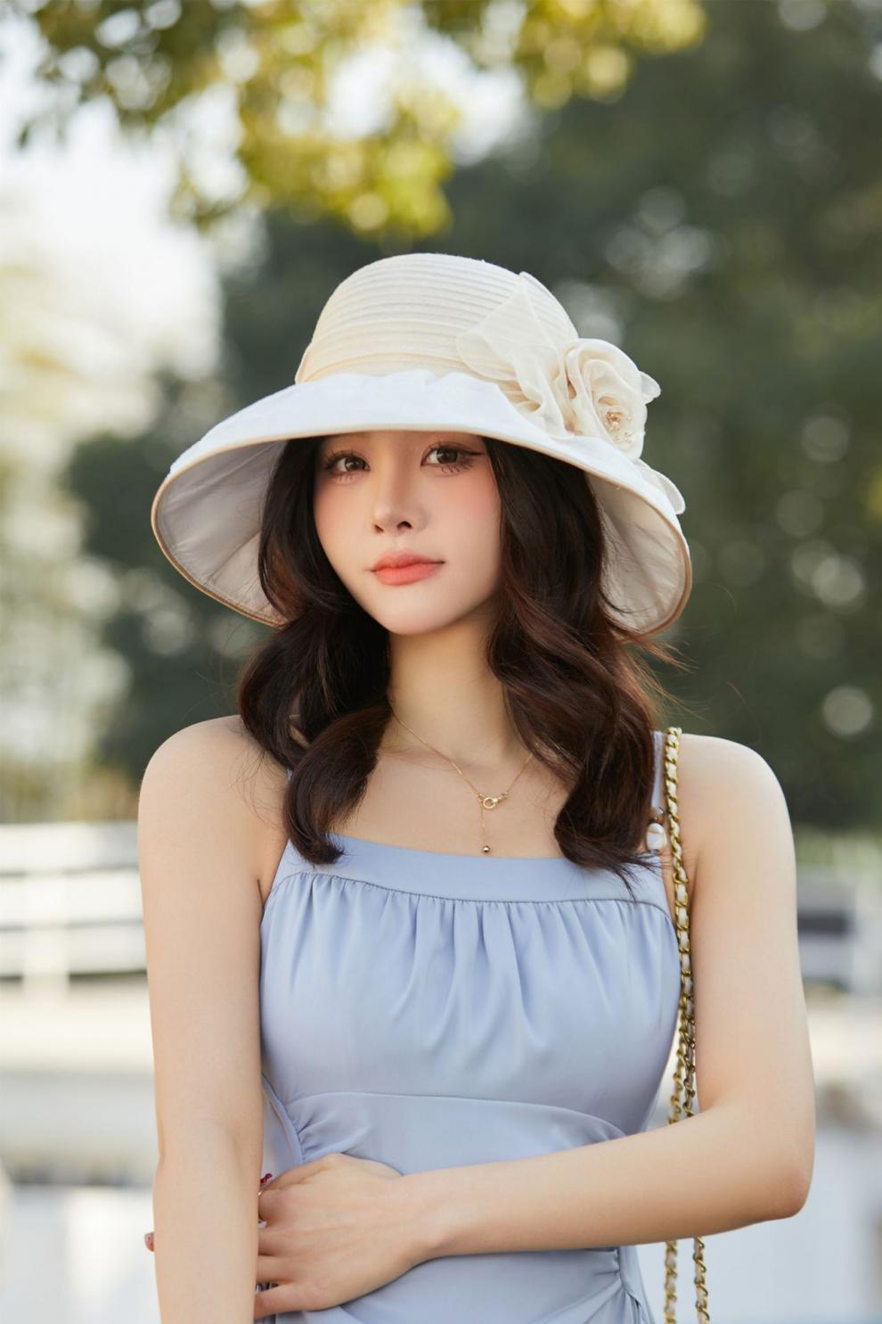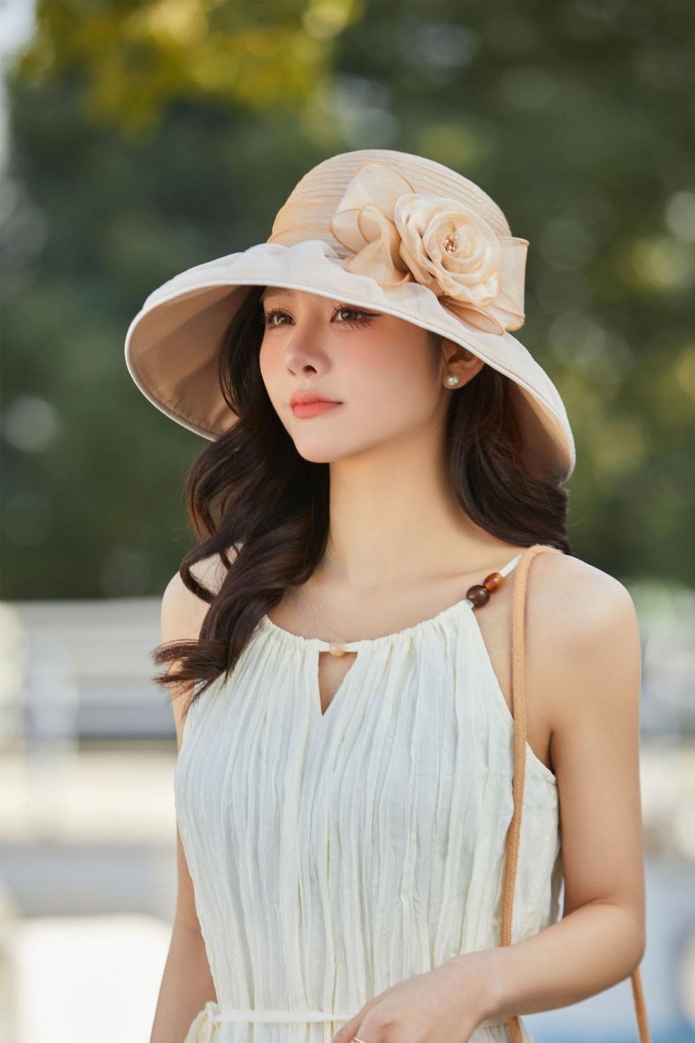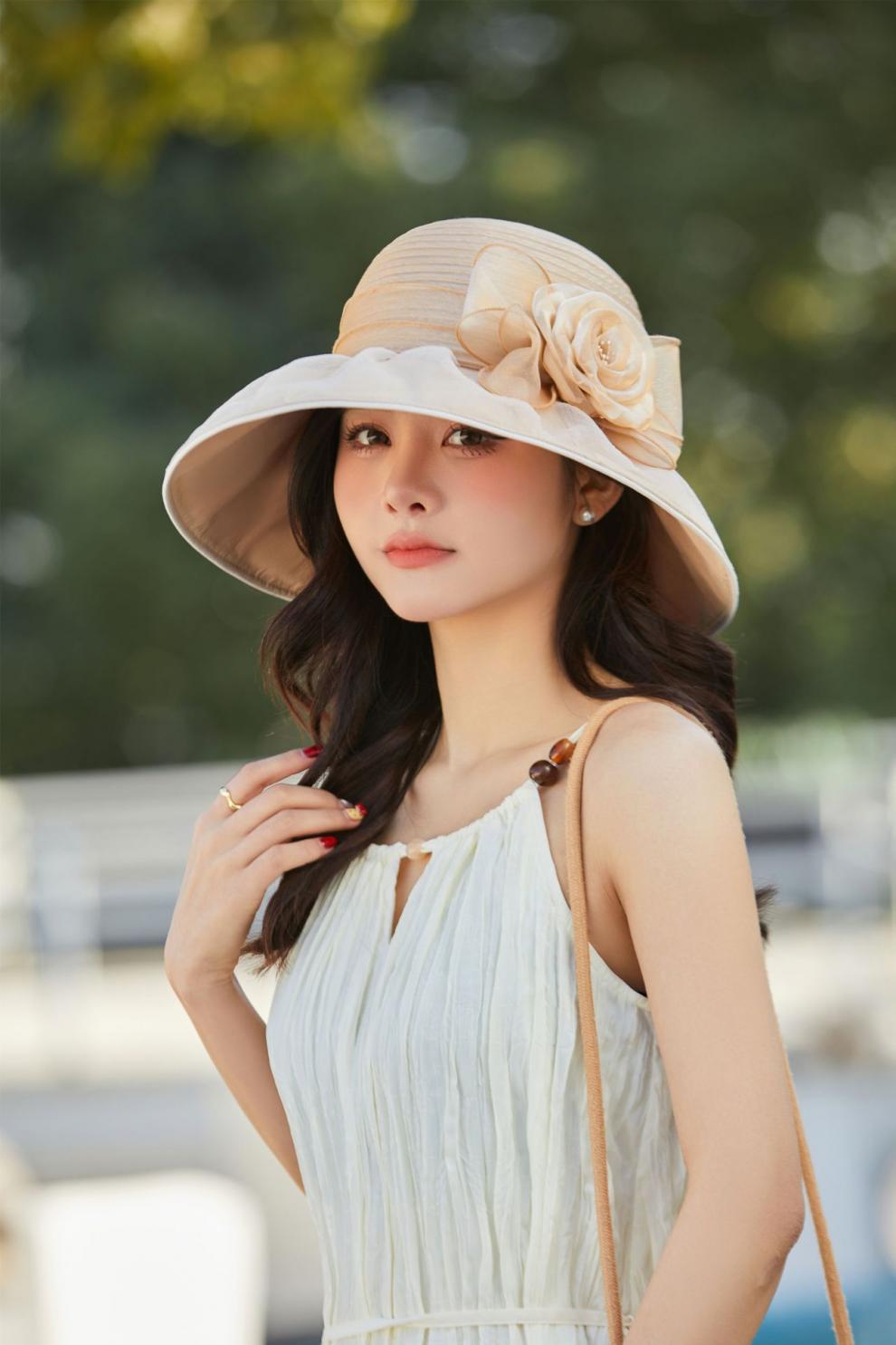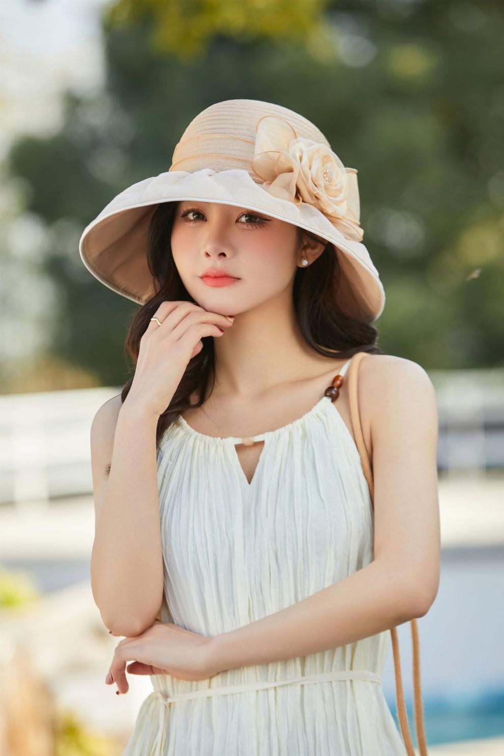 英倫風盆帽春夏の新型日焼け止め花レース日よけ帽ファッション優雅フランス式中高年帽子