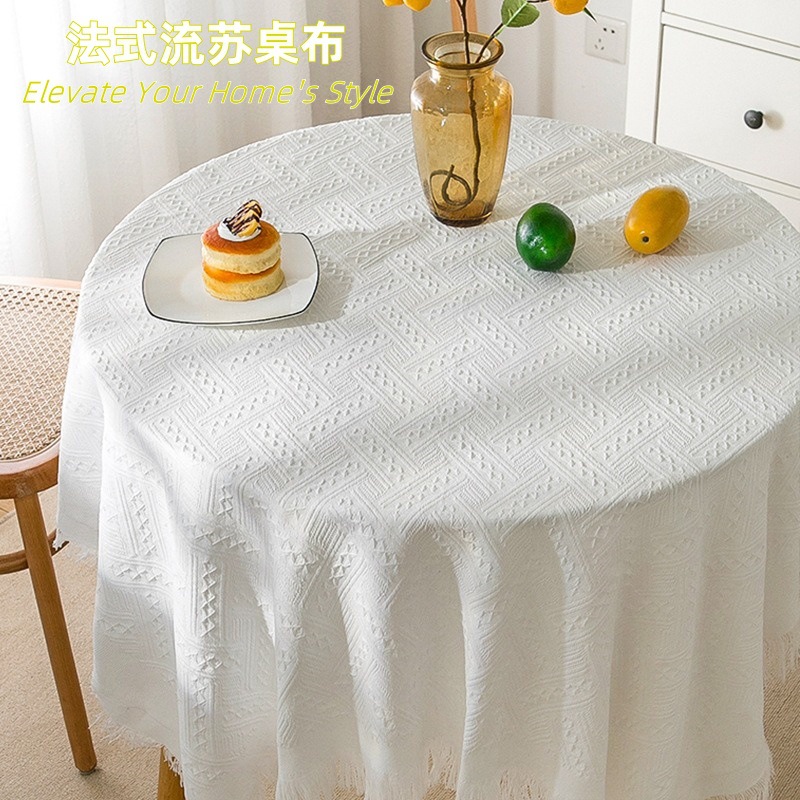 フランス風ワッフルテーブルクロス綿麻流蘇円テーブルクロスニット茶卓テーブルクロス屋外キャンプテーブルクロス卸売り