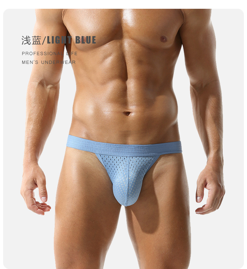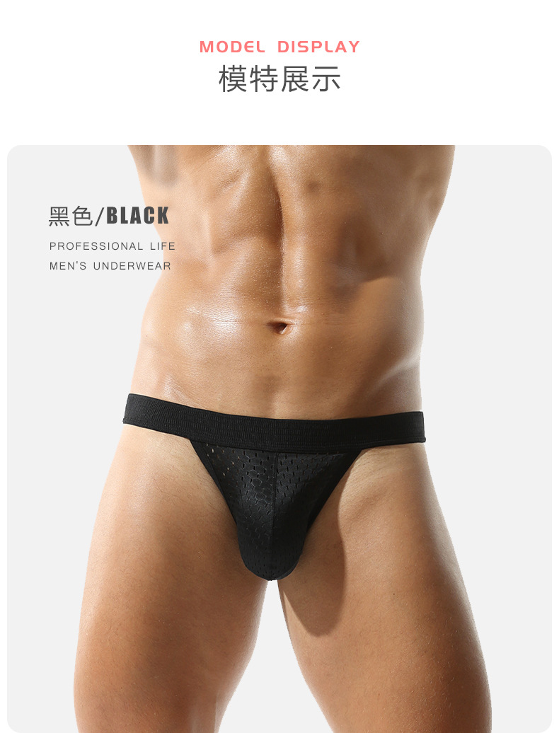 速売通純色男性下着広腰網穴薄タイプ通気U凸弾力大サイズ低腰運動高叉ズボン