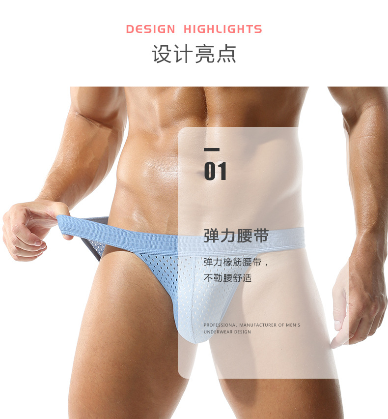 男士搂空出口内裤 渔网眼短裤简约青年如透气三角裤批发男