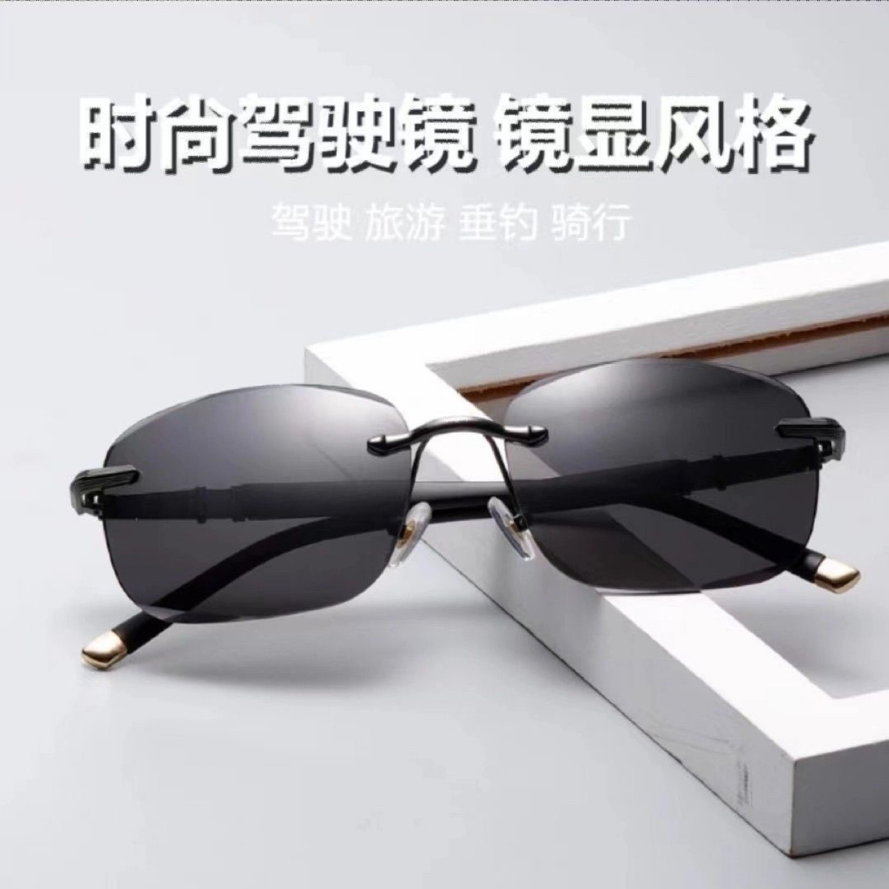 新型運転サングラス男性ファッションファッション紫外線防止強い光釣り専用フレームレスサングラス