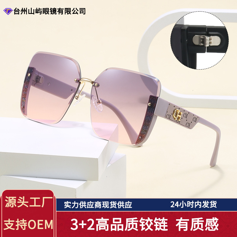 24新型ファッションファッションネット赤縁なしサングラス大枠サングラス女ins円顔街拍眼鏡