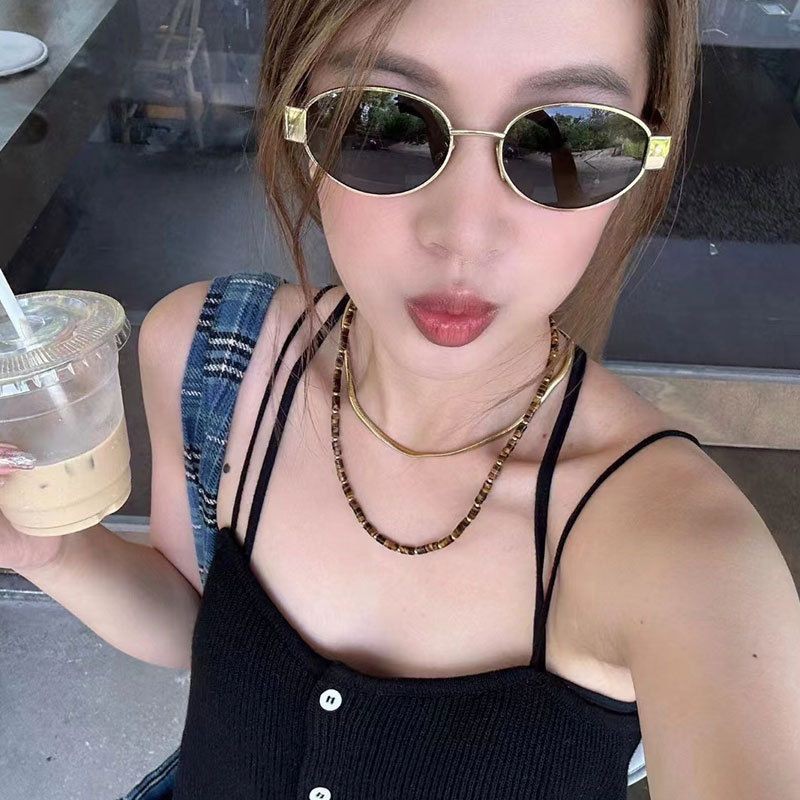 メタルフレーム凱旋門オーバルレトロサングラス男性と女性のための高品質日焼け止めファッションパーソナライズされたサングラス