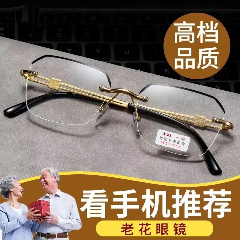 男性の枠なしの縁なしの枠なしの青い光の老眼鏡の高清の老眼の老光鏡の震え音はネットの赤い老眼鏡を生放送します。