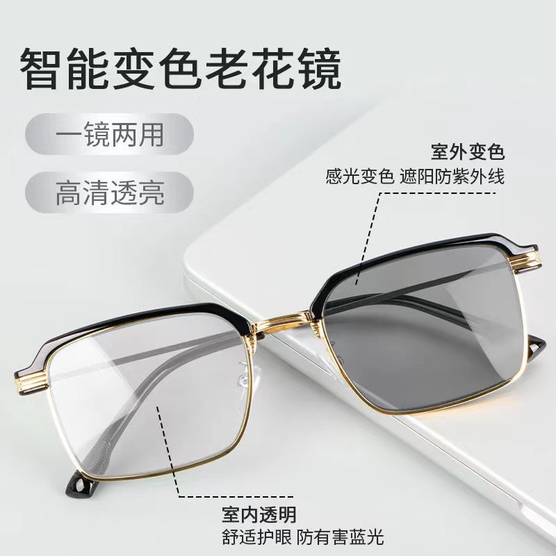 ファッショナブルなフォトクロミック老眼鏡、スマートな抗ブルーライト、新しいスクエア老眼鏡、ファッショナブルなビジネス高精細老眼鏡