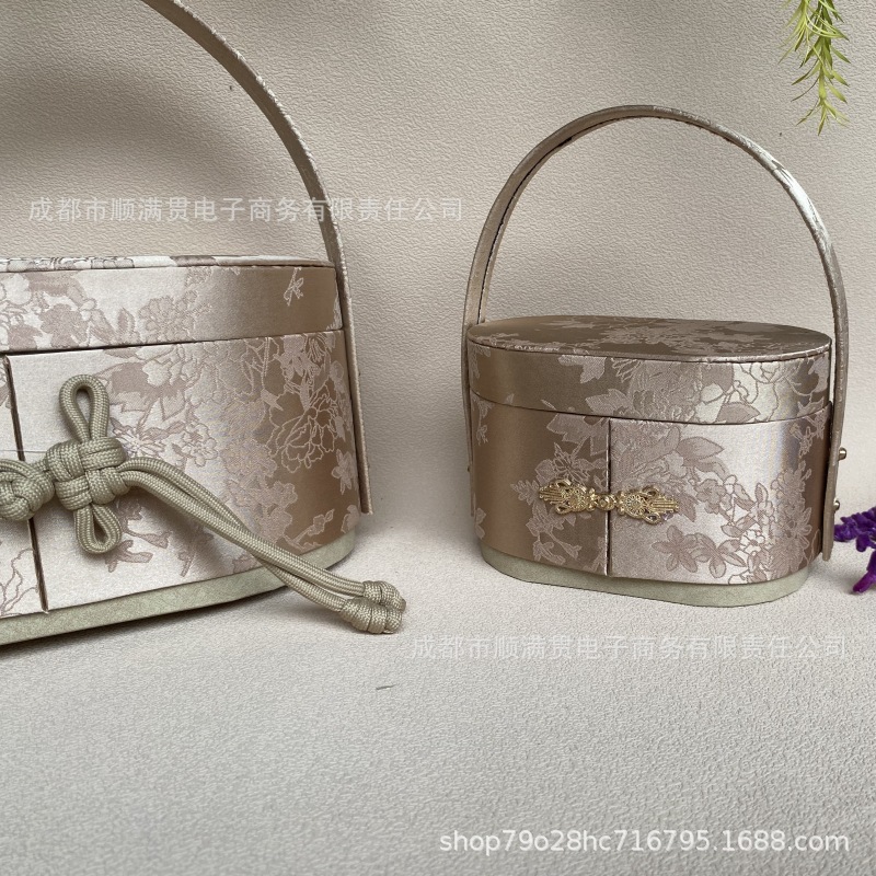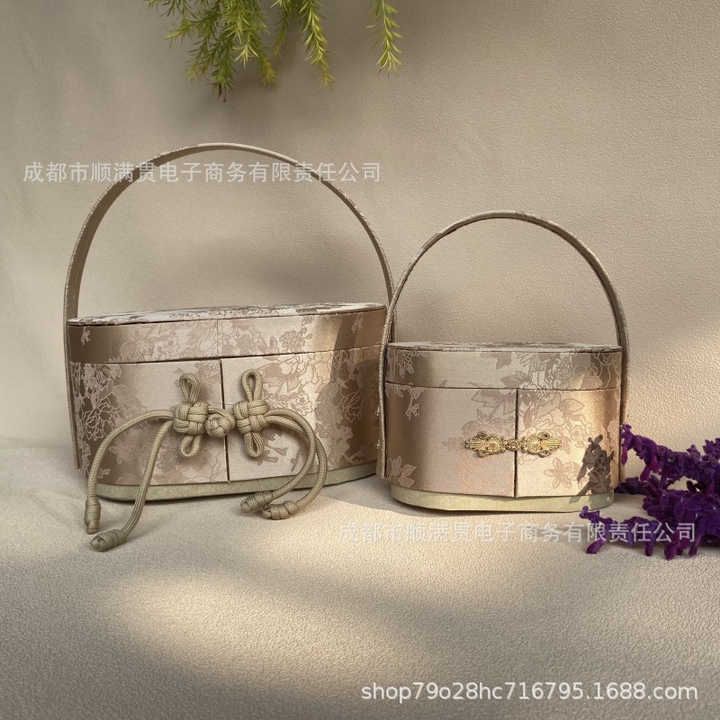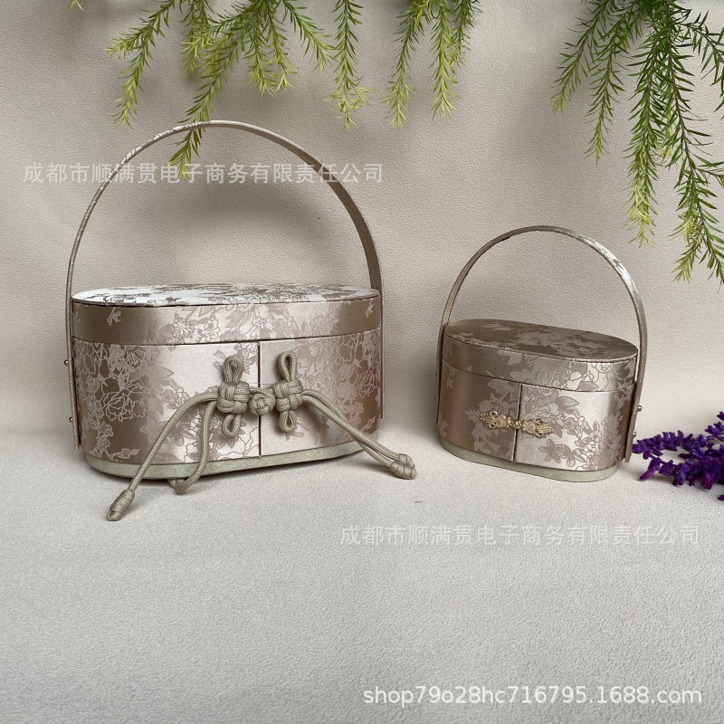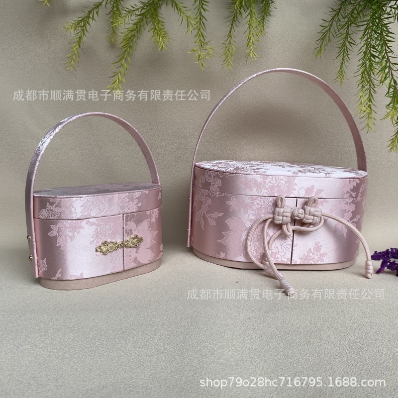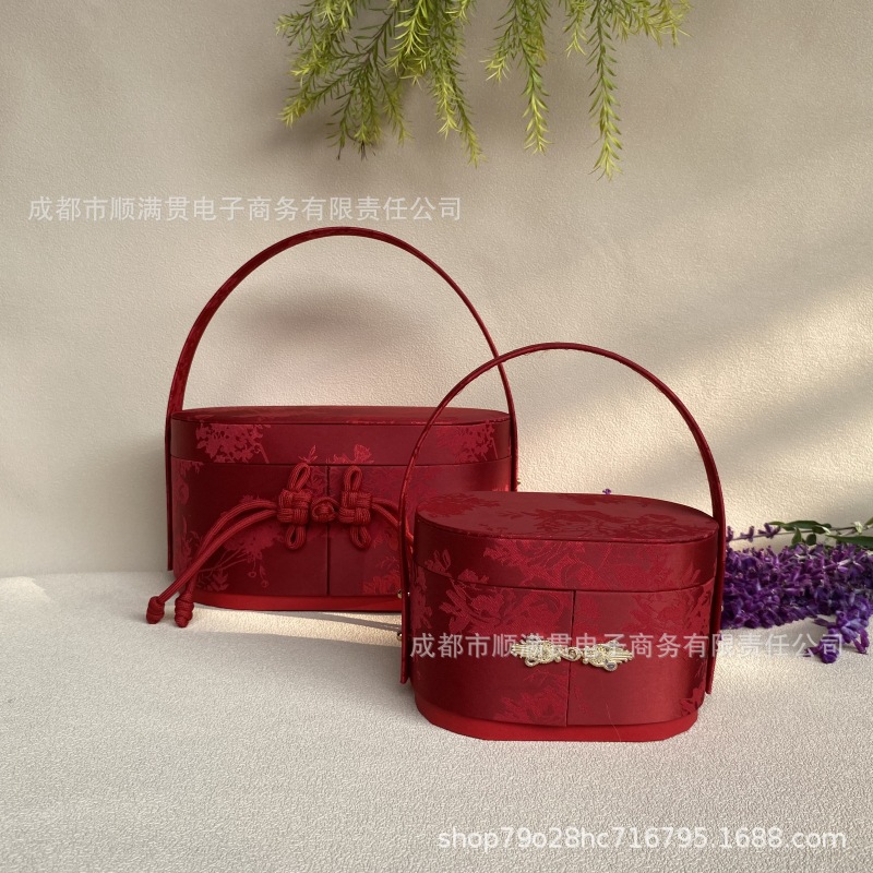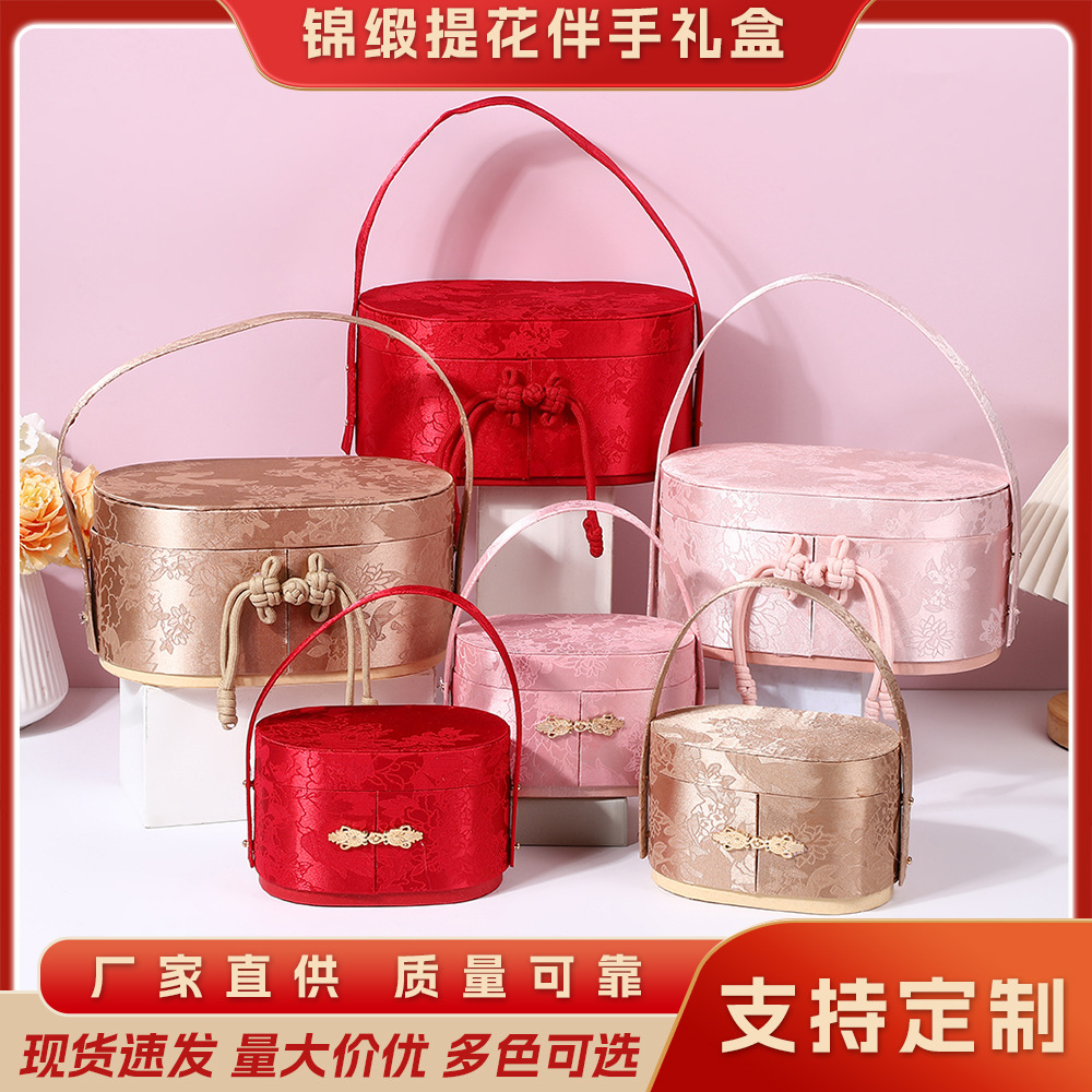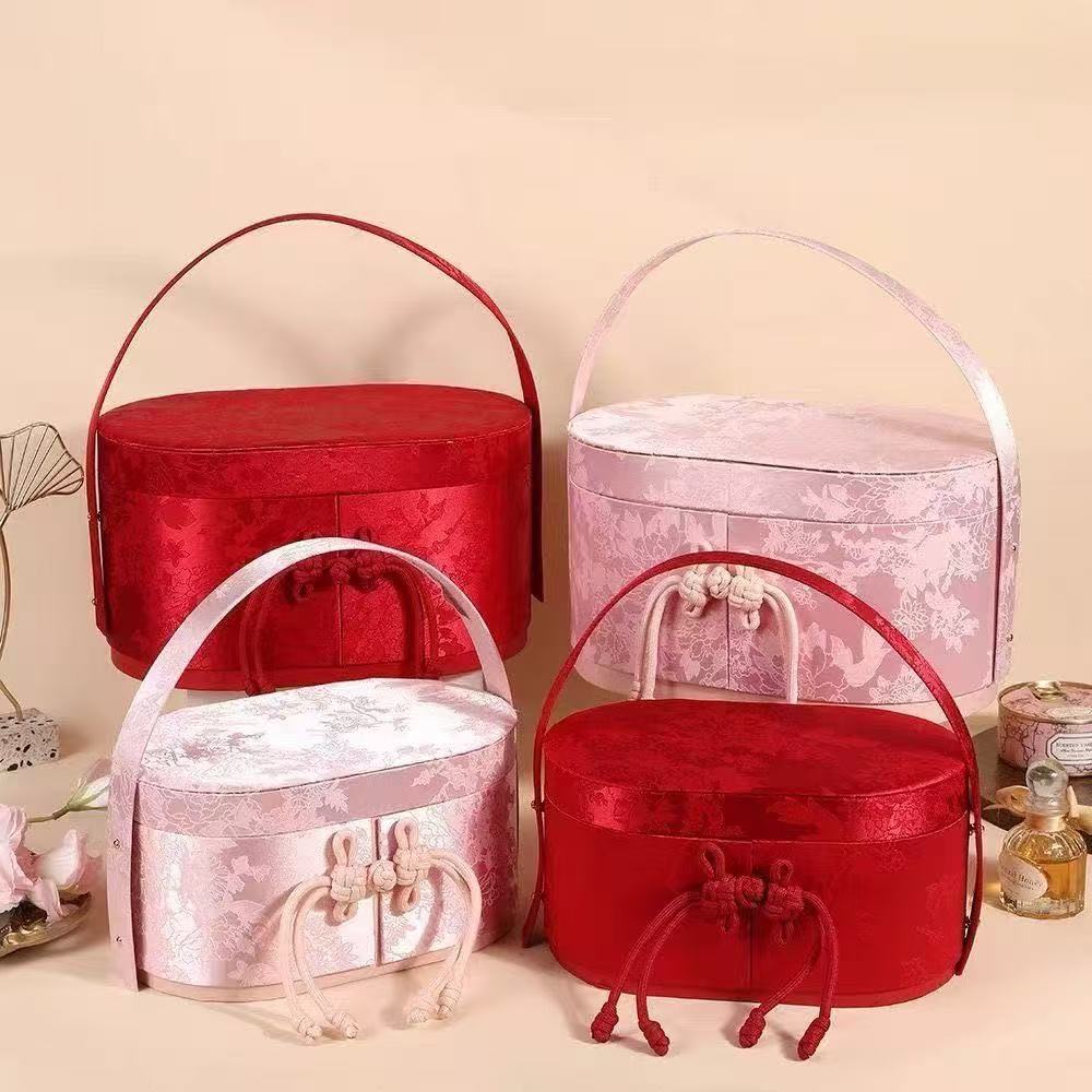 新中式锦缎结婚喜糖盒旗袍风椭圆手提伴手礼盒婚庆婚礼喜糖礼盒