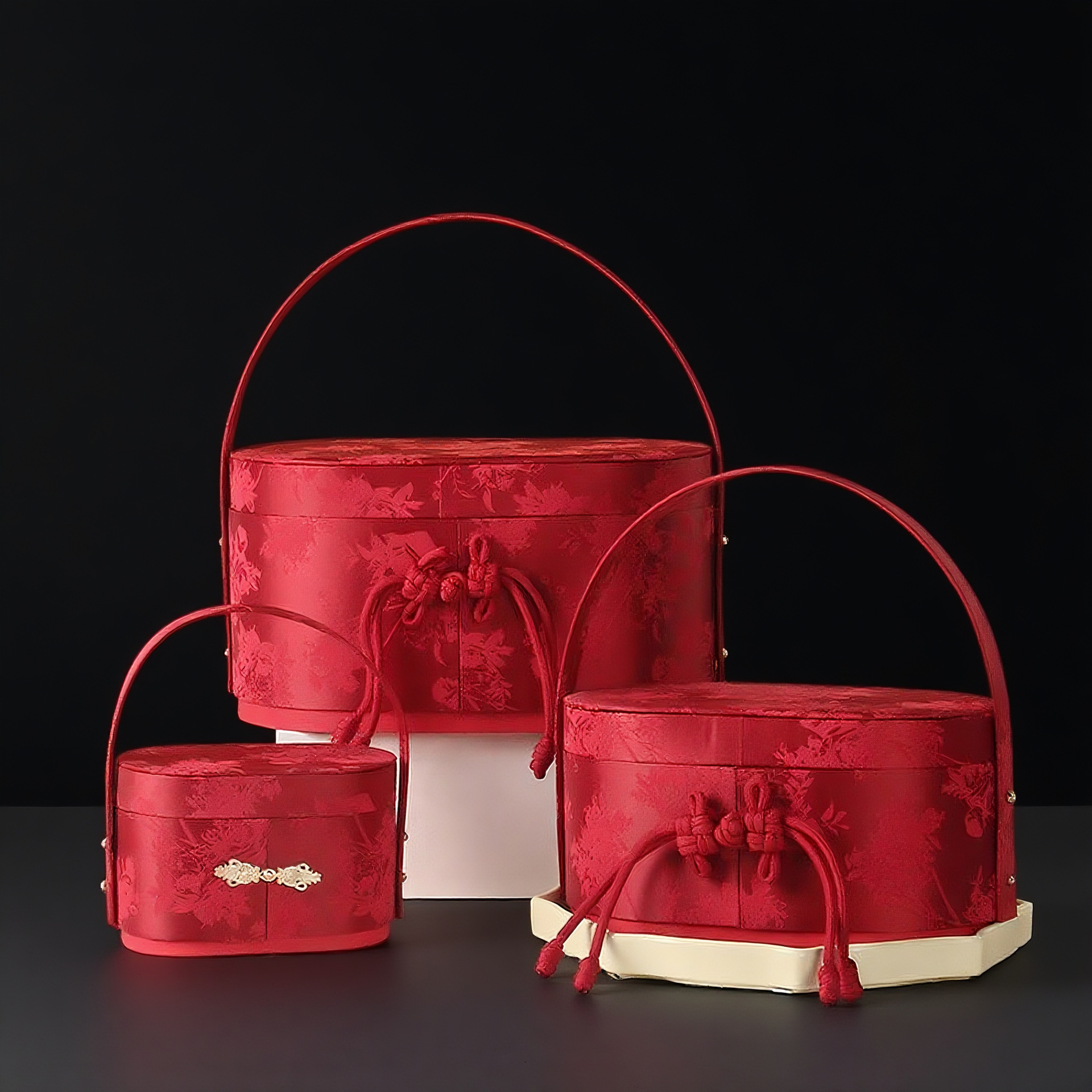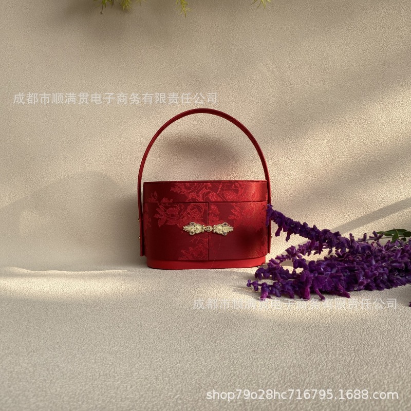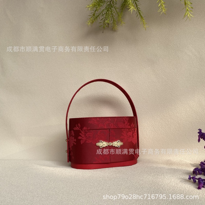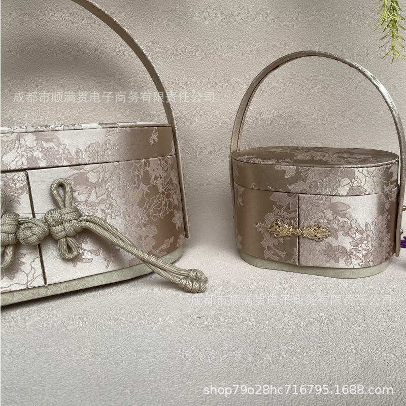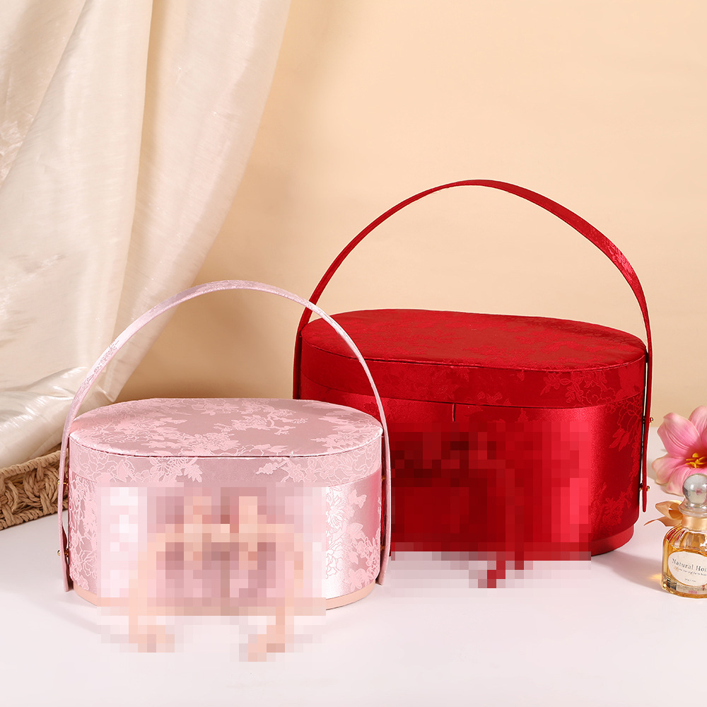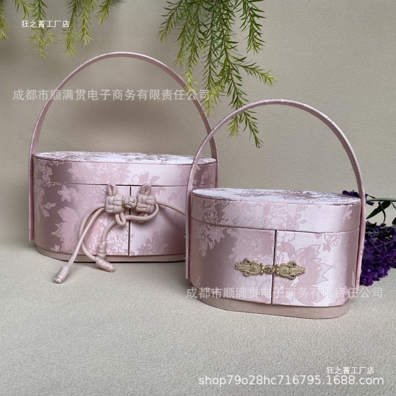 新中式锦缎结婚喜糖盒旗袍风椭圆手提伴手礼盒婚庆婚礼喜糖礼盒