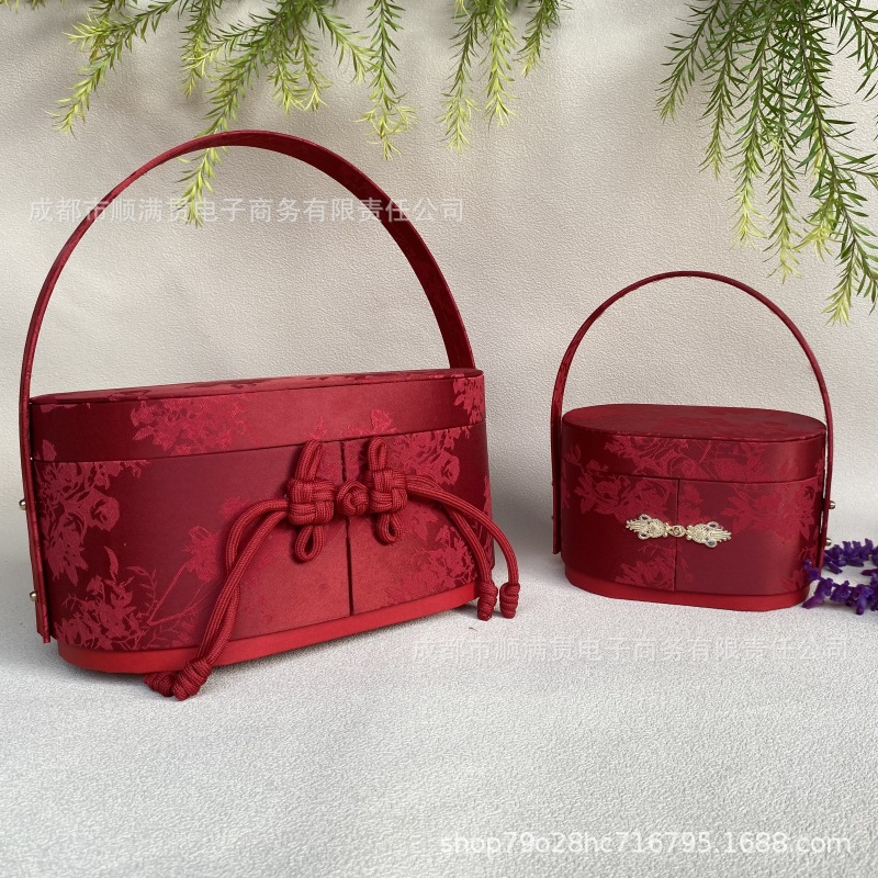 椭圆手提伴手礼盒新中式旗袍风喜糖盒子结婚礼物盒伴娘手提礼品盒