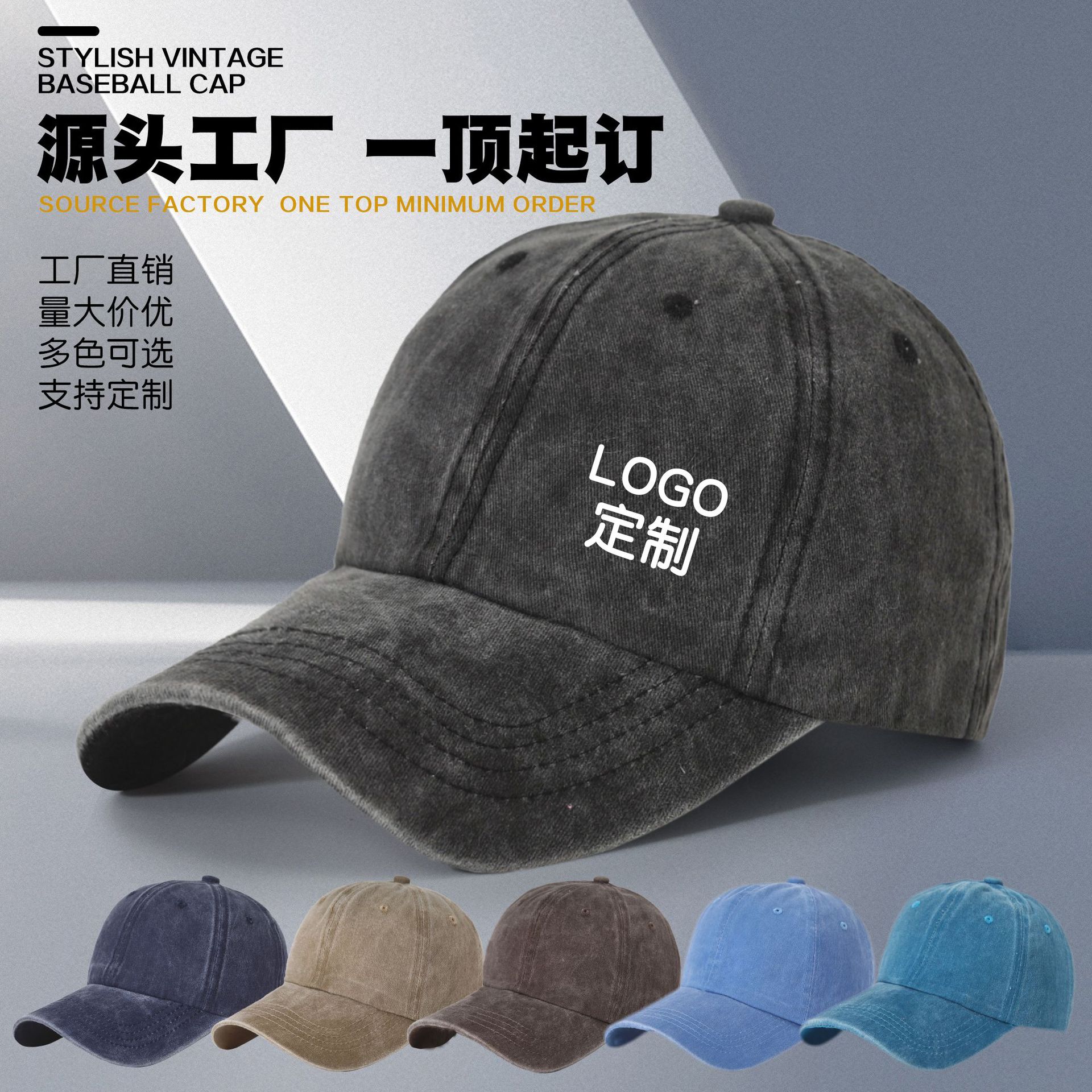 哇噢女韩版做旧水洗棒球帽定制logo复古弯檐遮阳帽纯色鸭舌帽印字