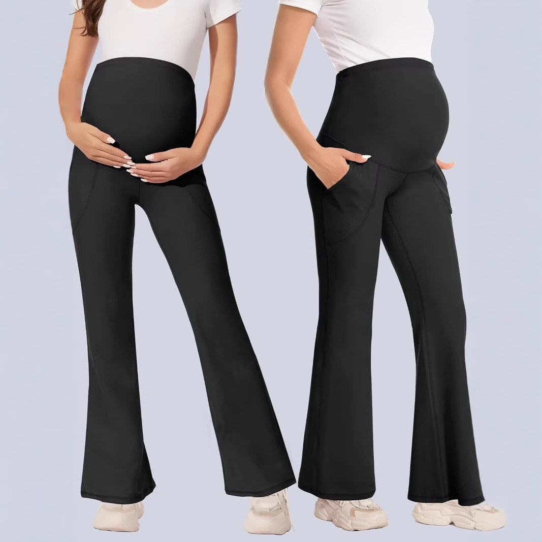 欧美跨境秋冬新款孕妇运动休闲裤喇叭裤托腹提臀高腰孕妇裤打底裤