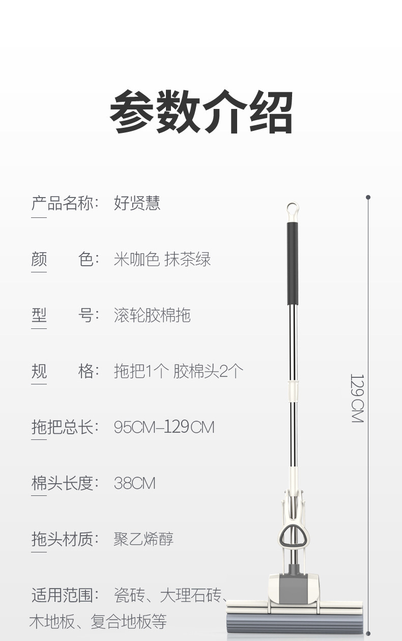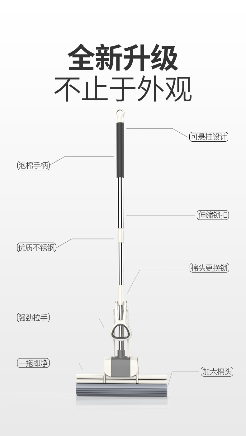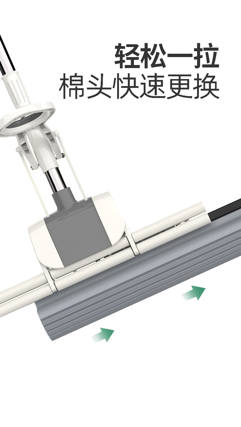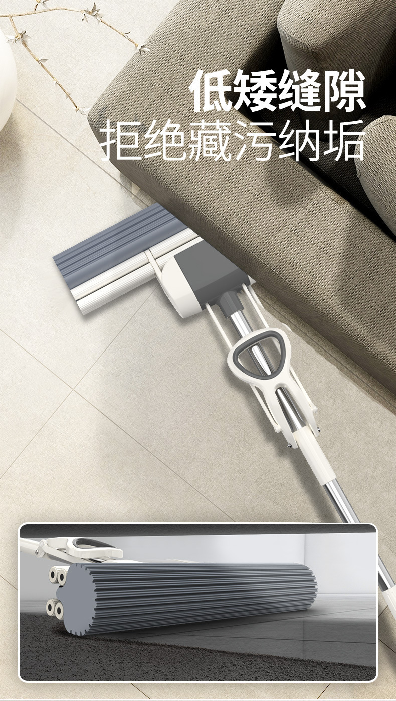 スポンジモップ、フロアモップ、コットンモップ、ステンレスモップ、手洗い不要、折りたたみ式、ローラー式水絞り、ワンタッチで掃除完了、伸縮式