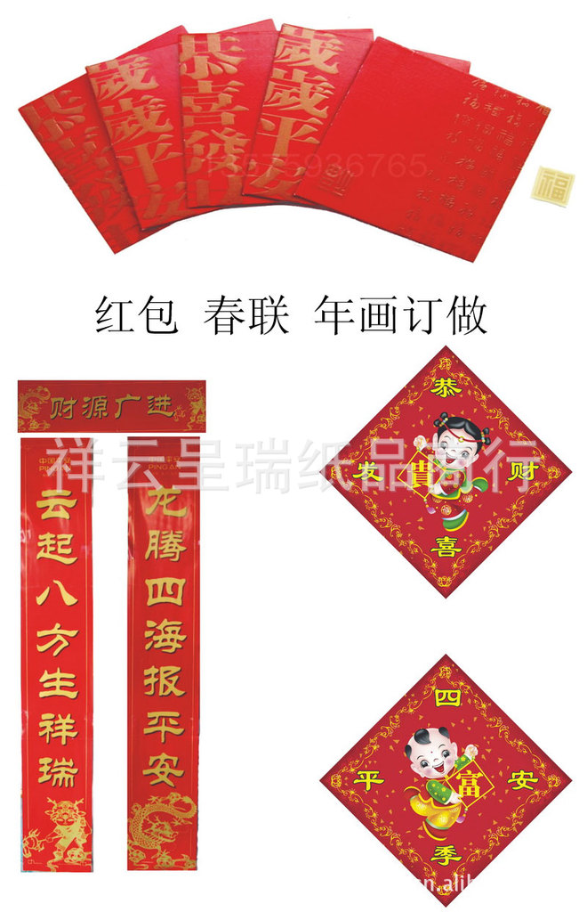 义乌市祥云呈瑞纸品商行 (生产销售种类最齐的喜字、福字、圣诞礼品、剪纸、静电贴、对联、红包、请柬、金童财神、卡通生肖年画、中国结饰等喜庆工艺品)