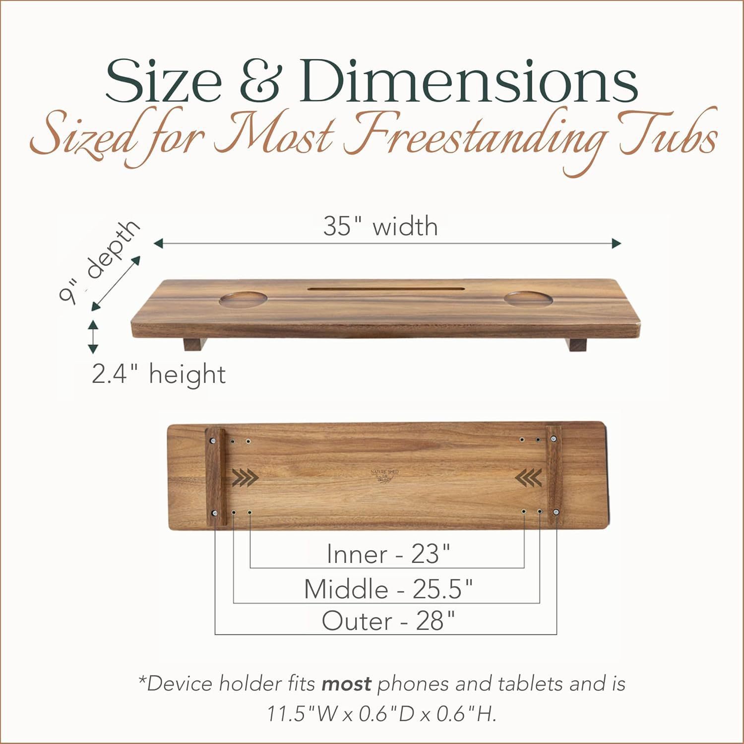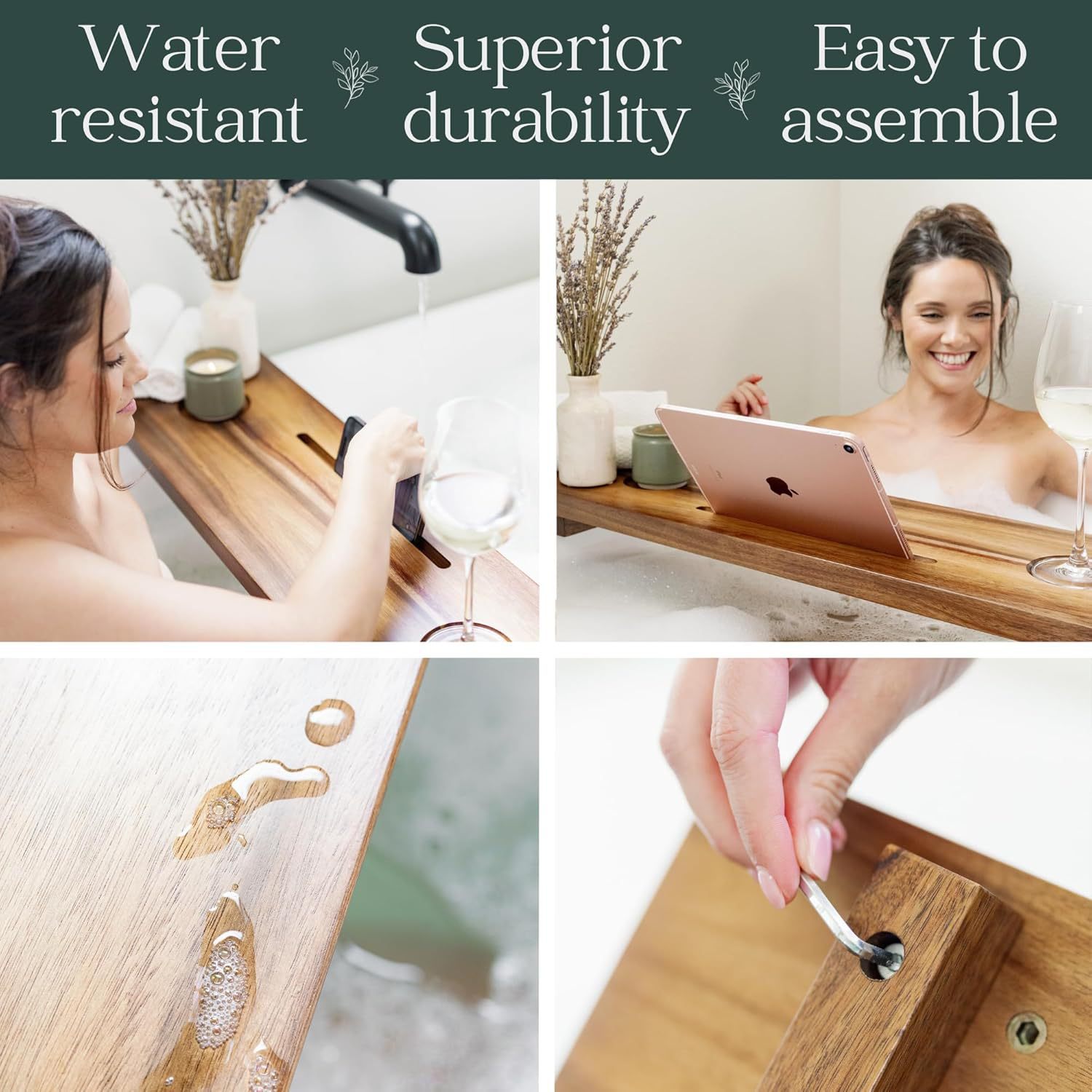 アカシアの木のバスラックの中実の木製のバスタブのトレーのシンプルなデザインはほとんどのバスタブの携帯電話のタブレットラックに適しています。