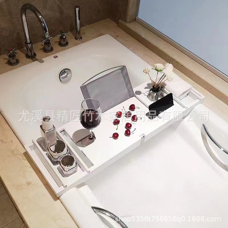跨境木质浴缸置物架轻奢泡澡手机平板红酒支架卫生间浴桶浴缸架