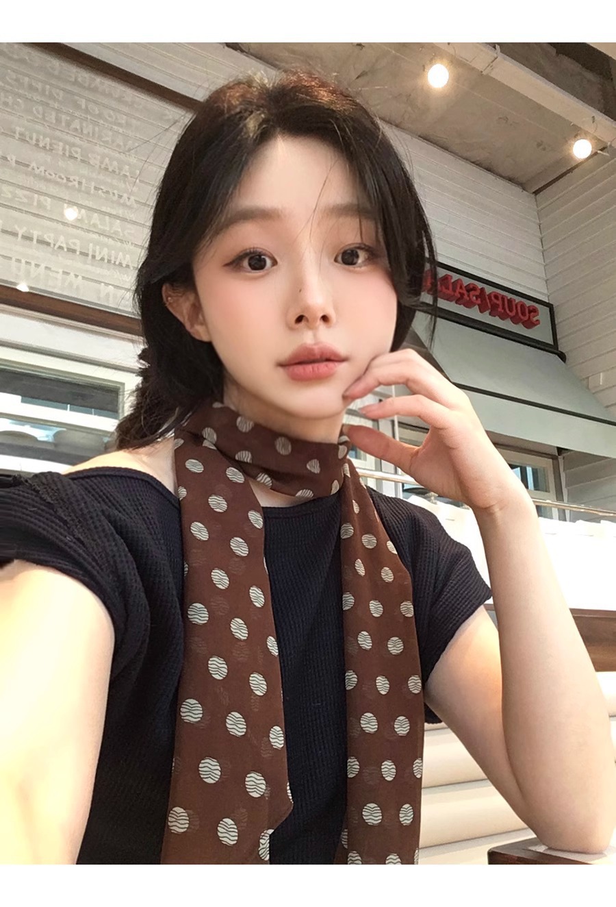 レトロでファッショナブルな水玉模様のロングシルクスカーフ、春と秋のホットガールファッション、多用途の装飾スカーフ、細いリボン