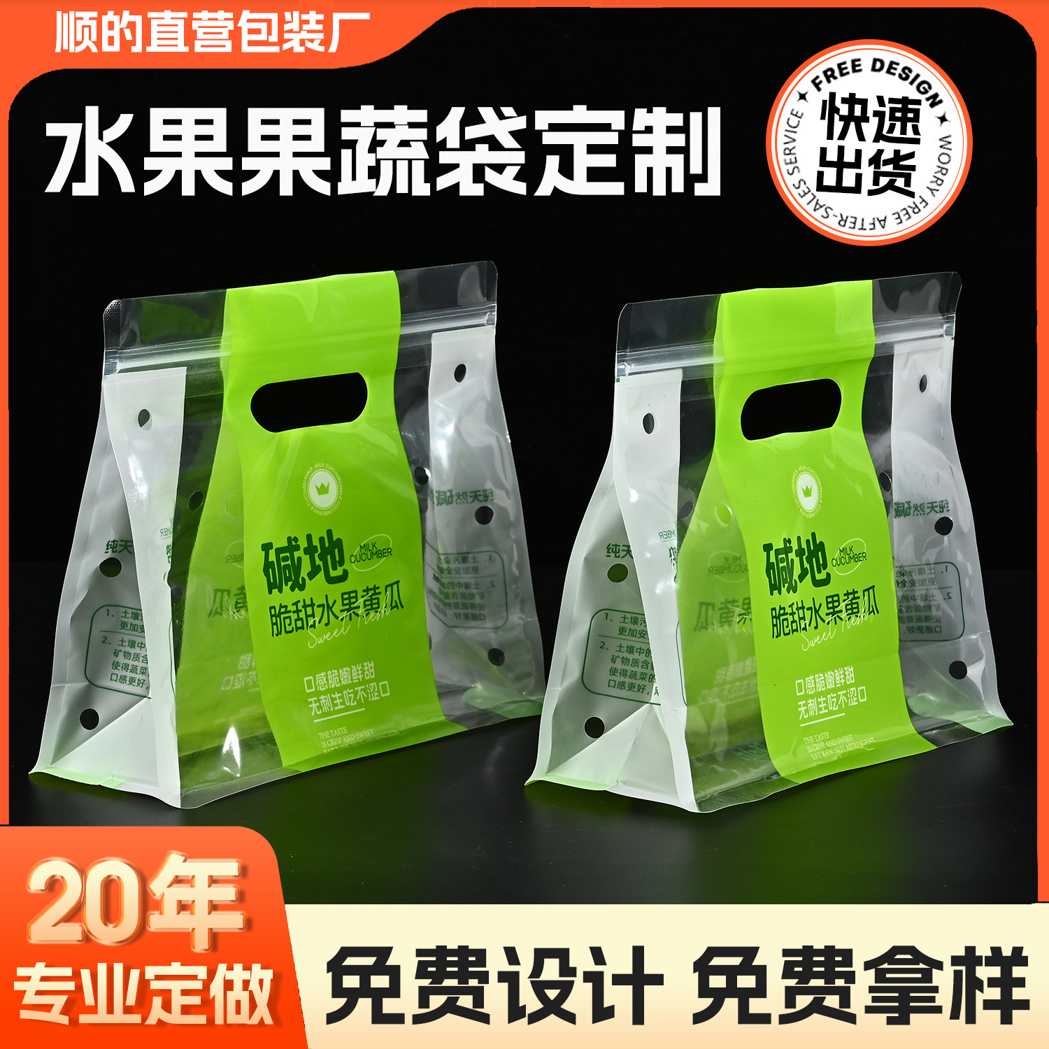 透明水果食品包装袋定制 塑料自立手提拉链袋通用果蔬自封保鲜袋