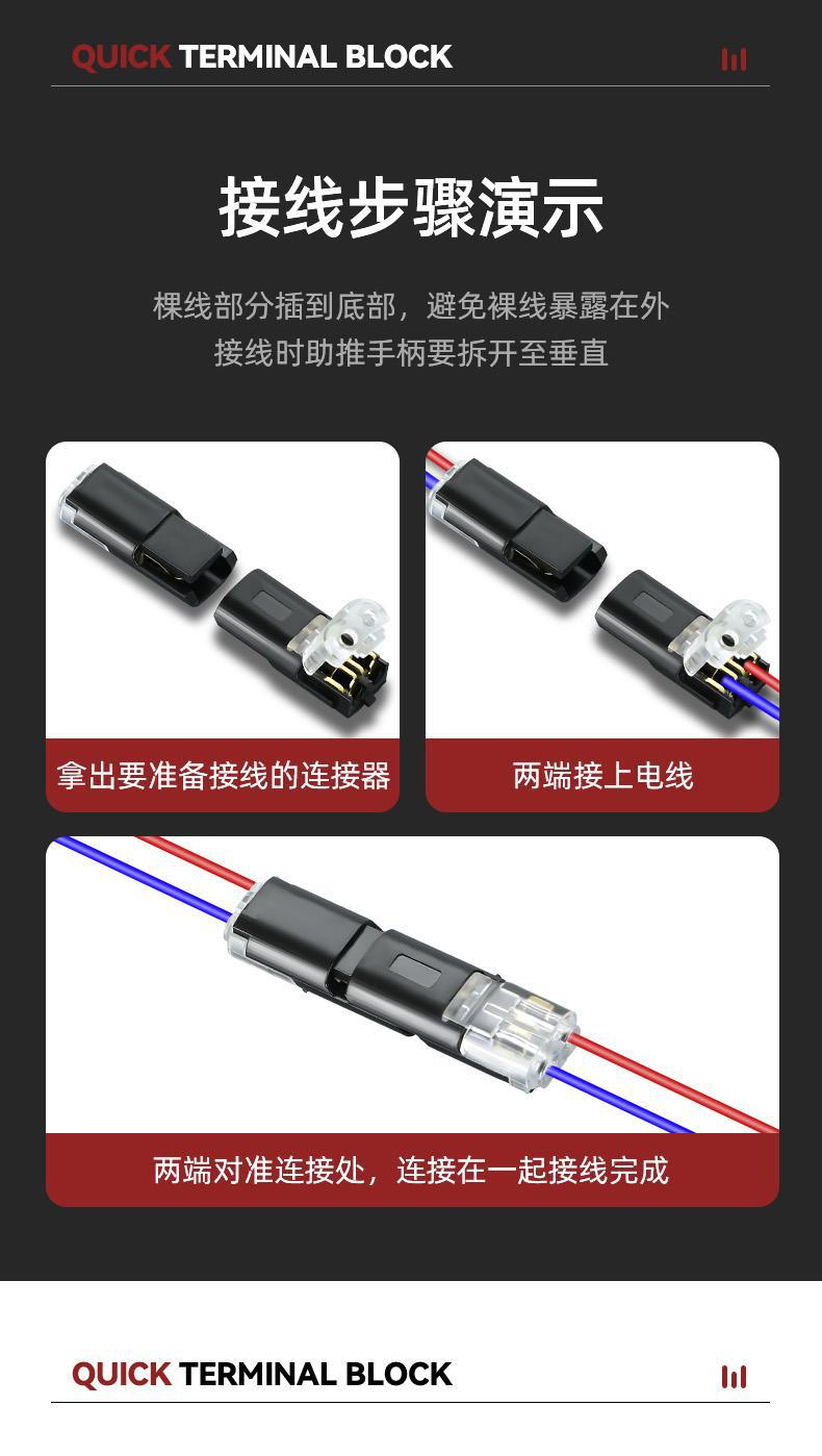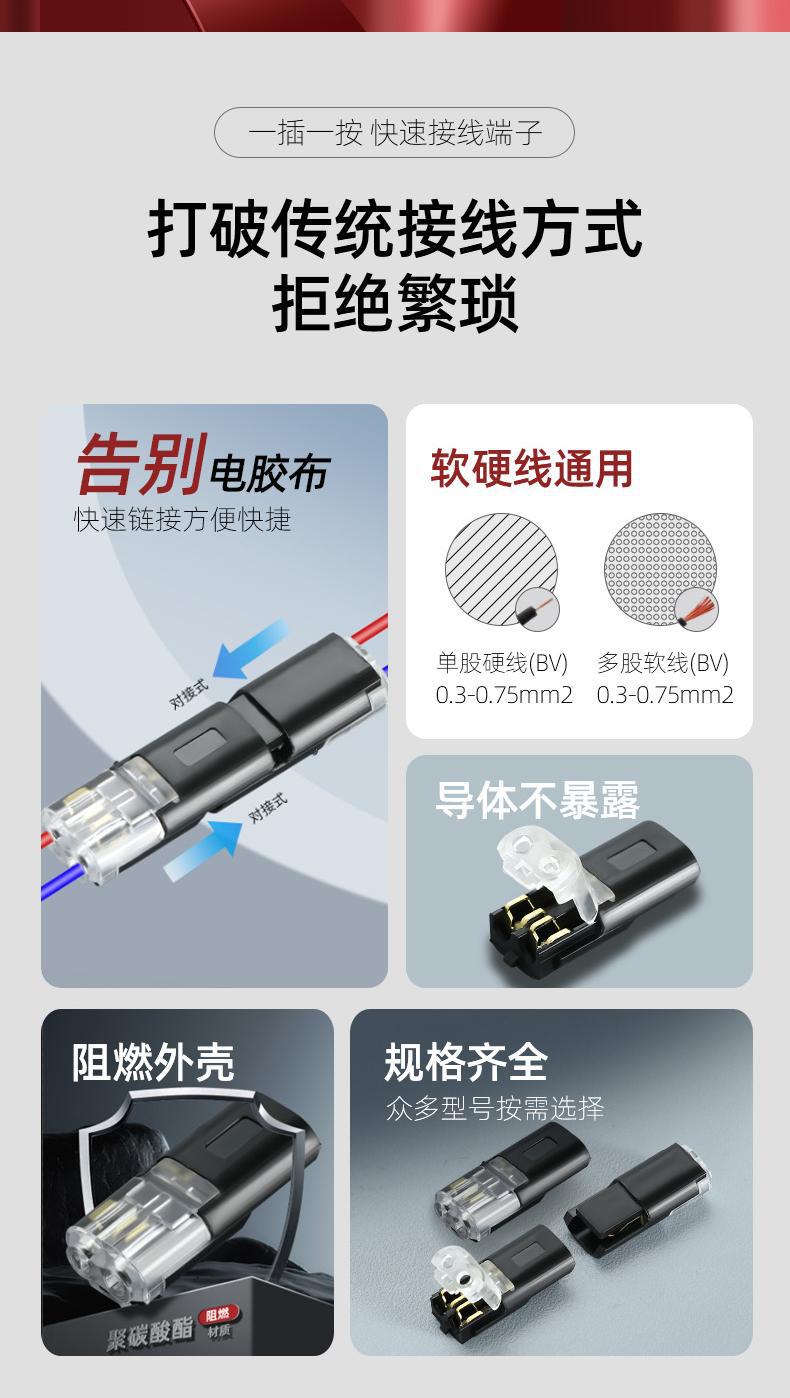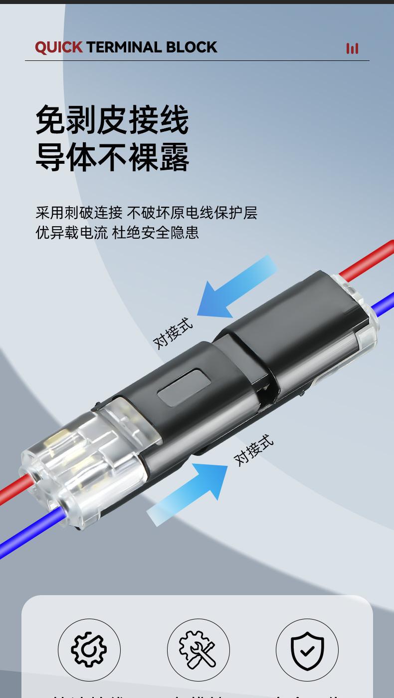 LED免剥线免焊接快速接线器双线互插可拔型D2对插T1