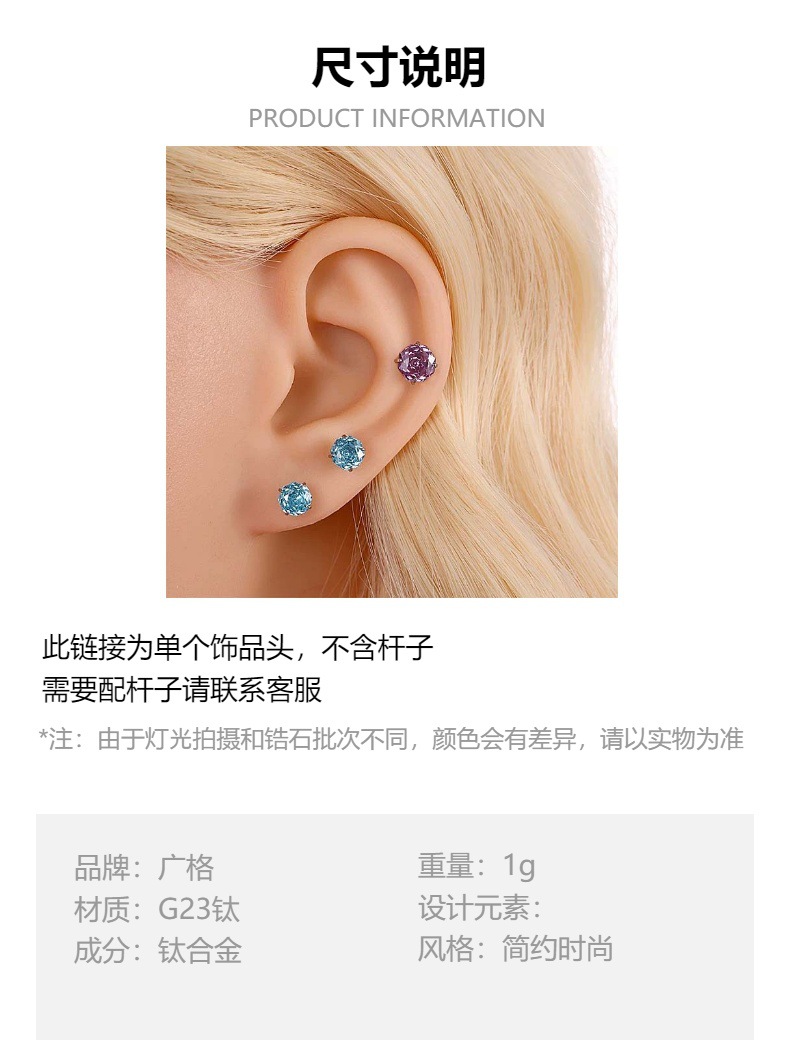 F136钛镶欧泊极光果冻澳宝平底埋钉饰品耳骨钉耳垂饰品G23钛饰品