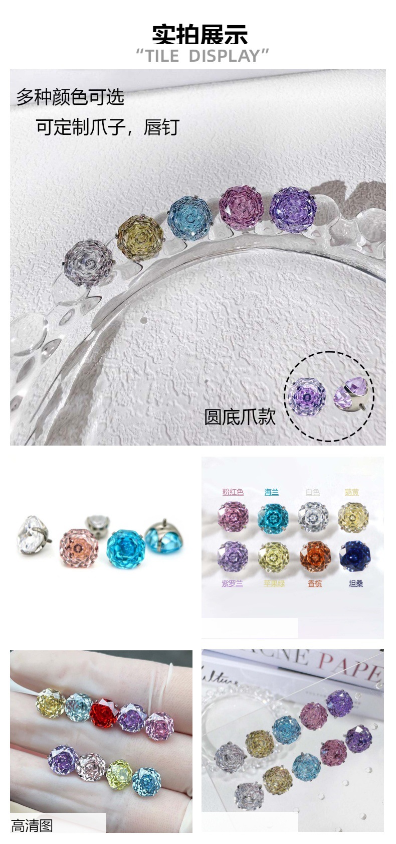 F136チタン八辺ミレニアムローズピアスリップピアスバースト5Aジルコン丸底爪トートピアスアクセサリー