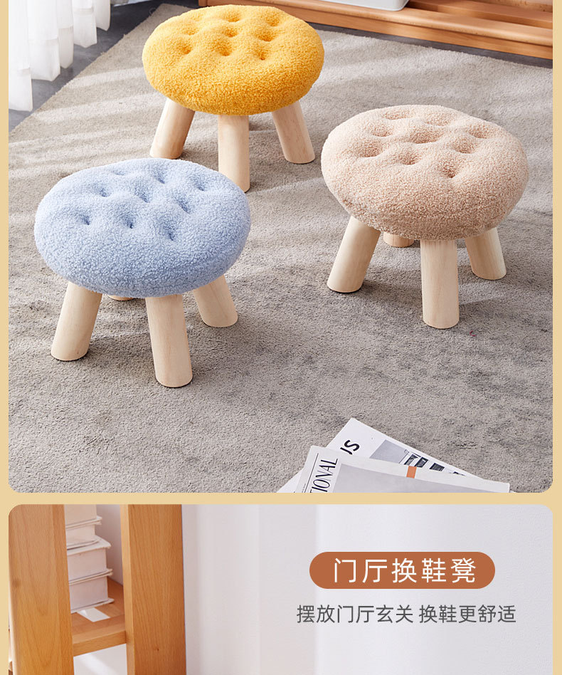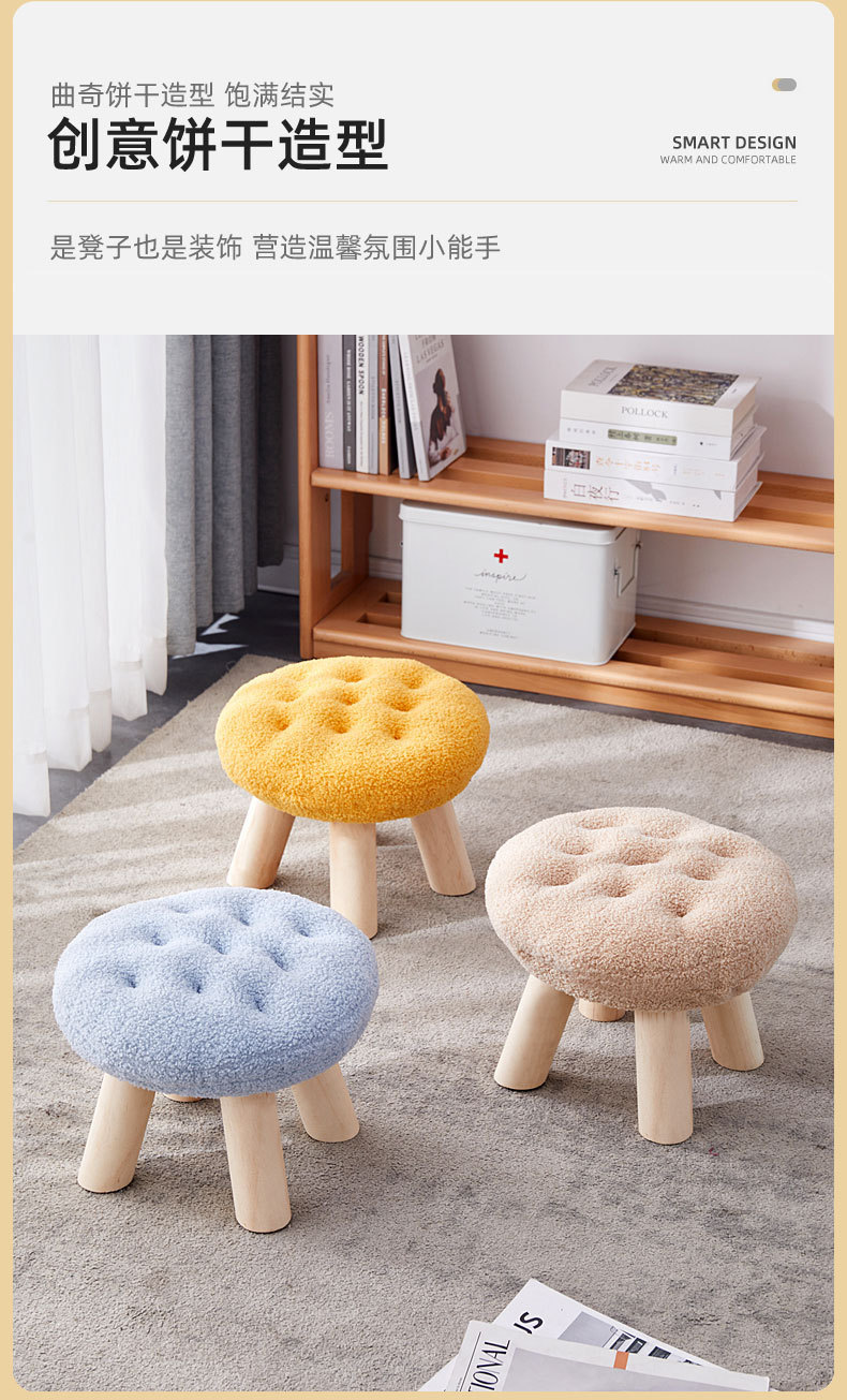 クッキーの小さい腰掛けのネットの赤い色の近代的なシンプルな実木の子供は靴の腰掛けのソファーのお茶のいくつかの低い腰掛けの小さい腰掛けを交換します。