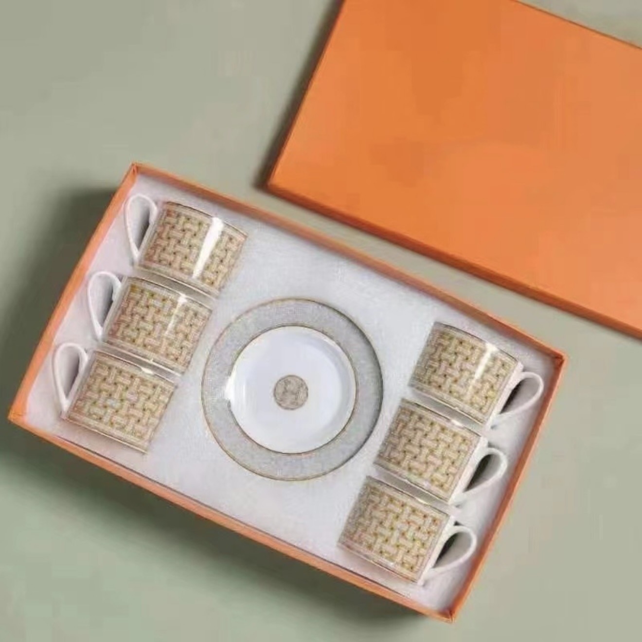 ヨーロッパ式のシンプルなブランドのマグカップの牛乳カップの朝食カップのモザイクの陶磁器の高級な精巧な骨の磁器のh家の礼箱
