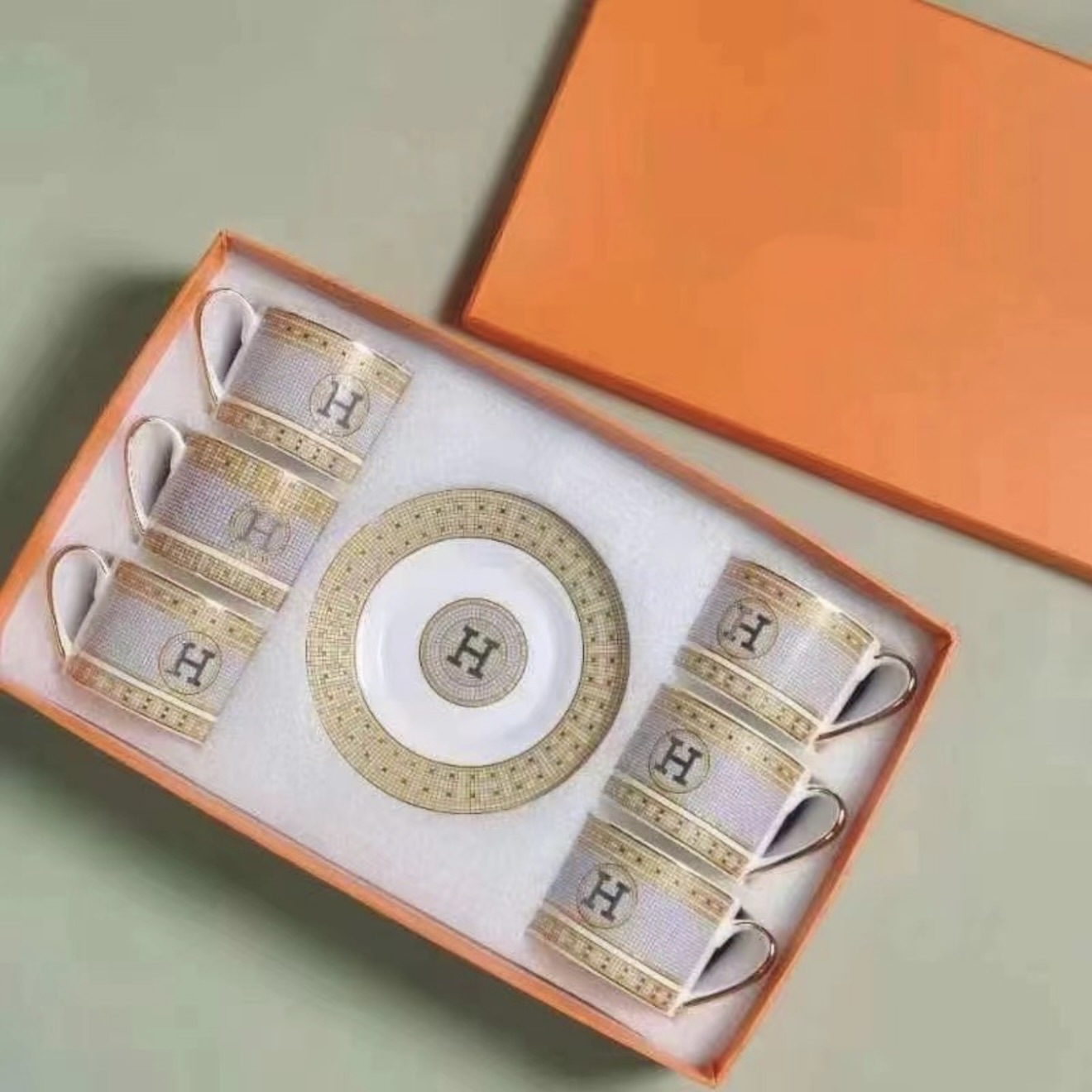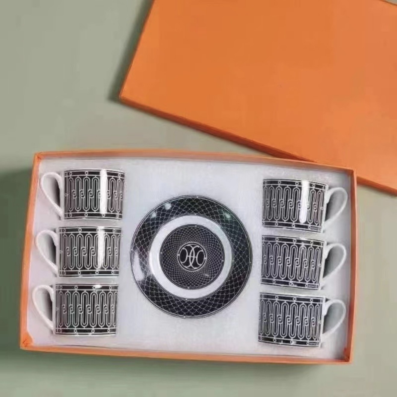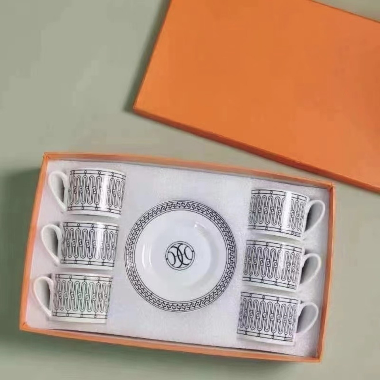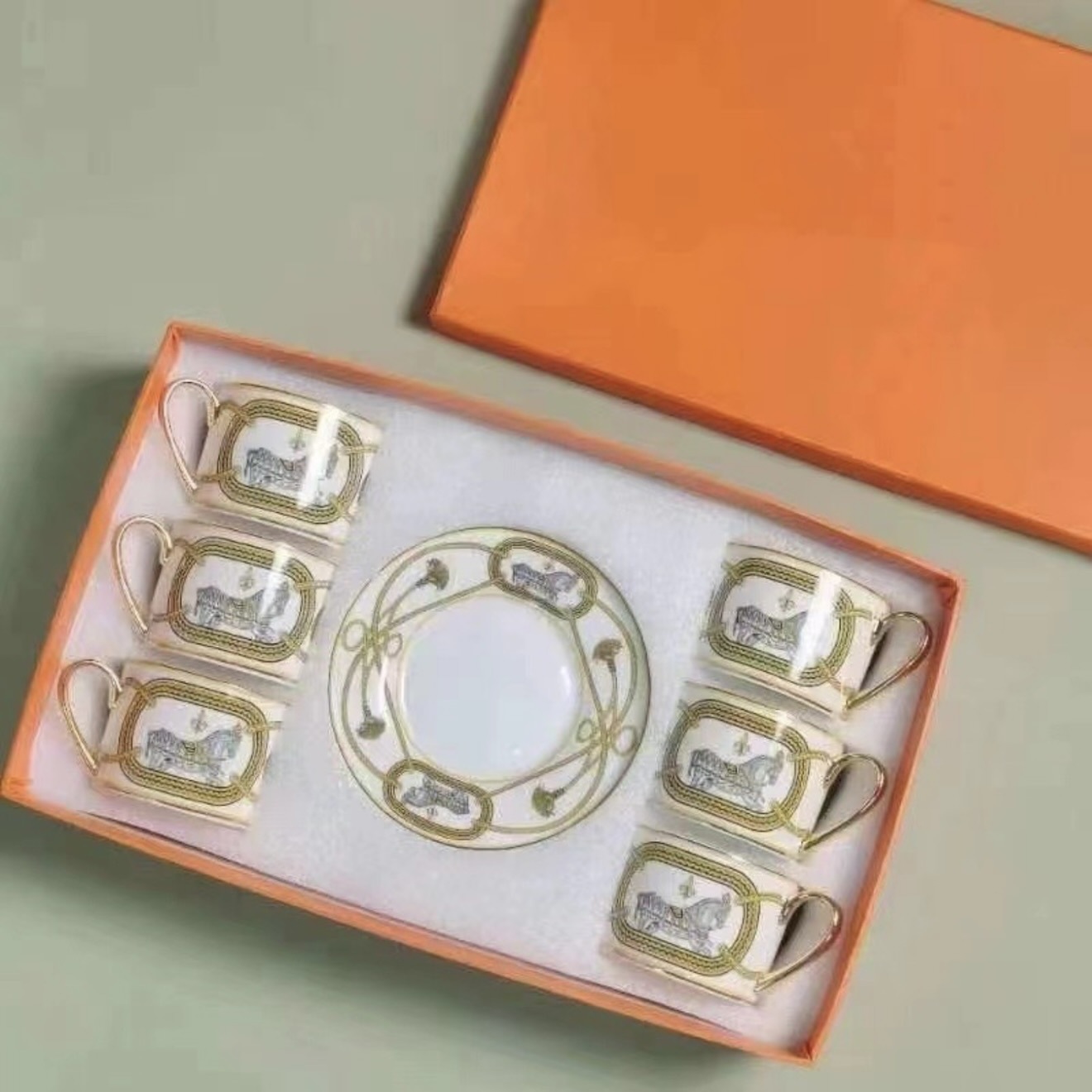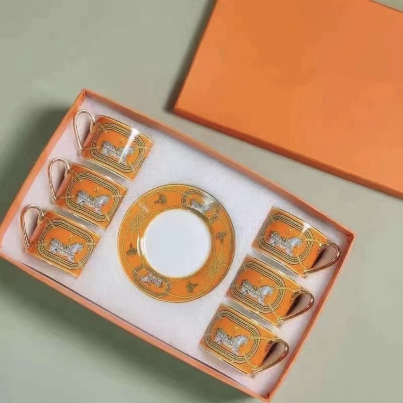 国境を越えたヨーロッパ式H家骨磁器コーヒーセットカップルカップ6杯6皿の軽い贅沢なレトロな昼寝の家庭用プレゼント