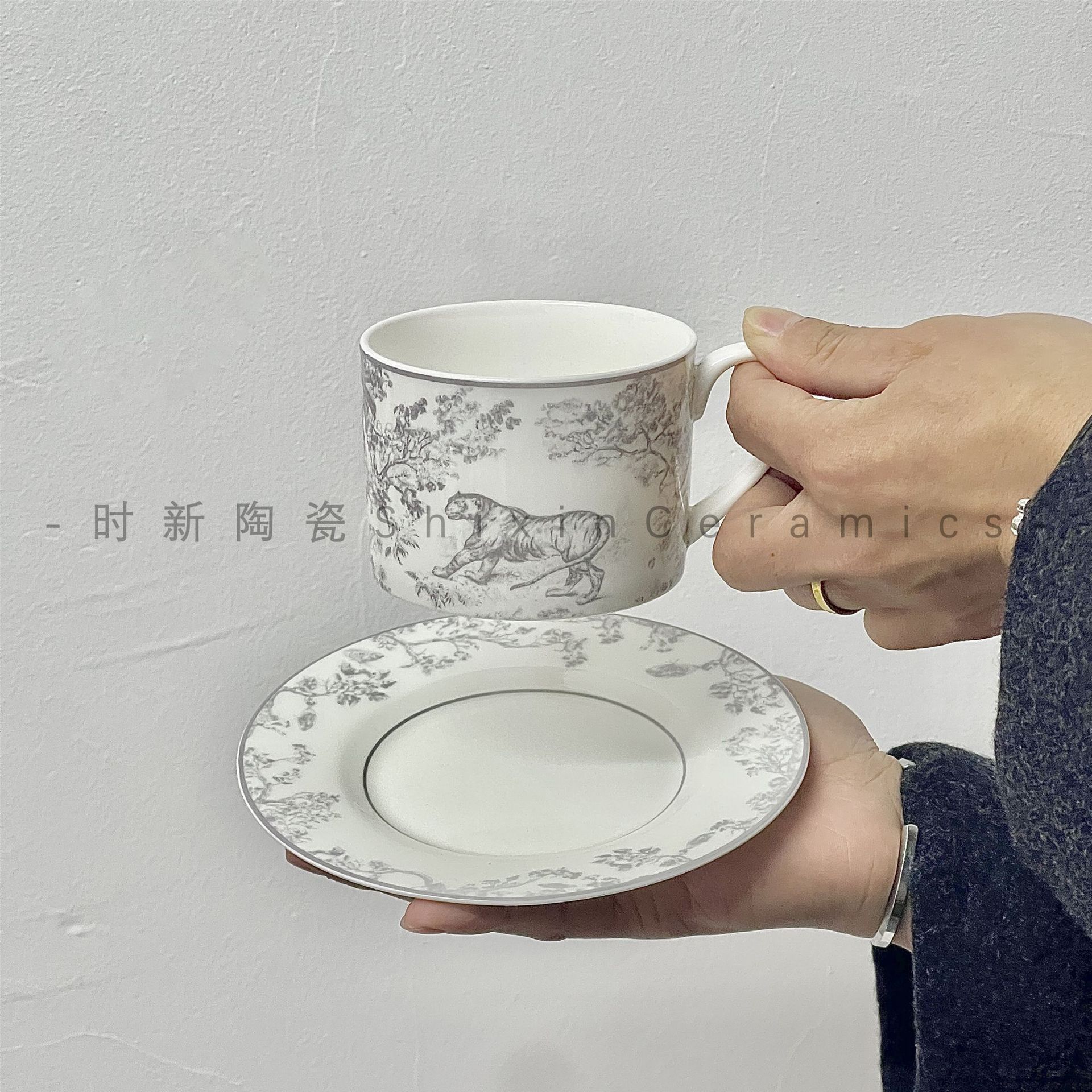 D家茹伊シリーズ赤青灰色動物図骨磁器コーヒーカップ皿ヨーロッパ式軽贅沢お茶カップギフトボックス