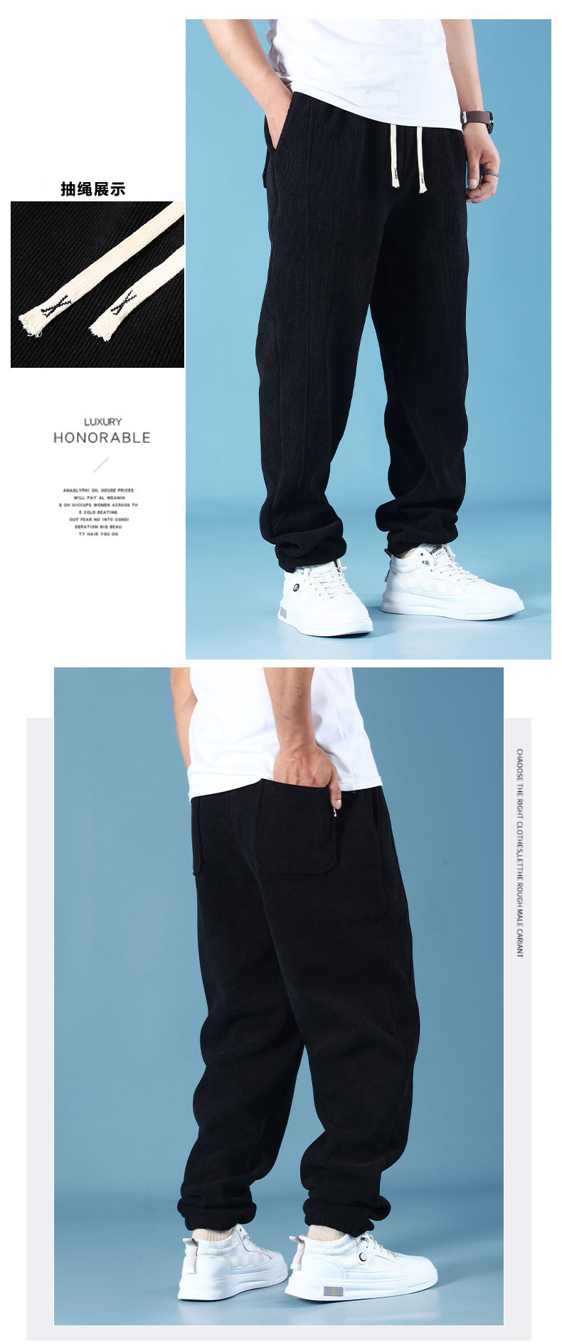 大码重磅灯芯绒休闲卫裤男士秋冬款加肥加大码宽松侧面插标休闲裤