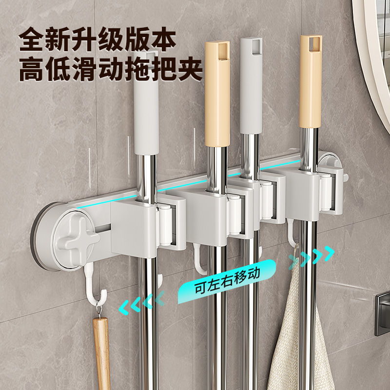 卫生间吸盘拖把壁挂夹浴室扫把拖布挂钩免打孔拖把夹墙上收纳神器
