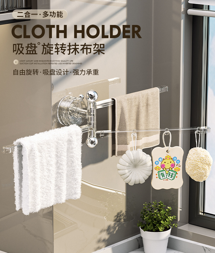 吸盤雑巾架ネット赤穴なし壁掛け回転物置棚キッチン雑巾架多機能ハンガー