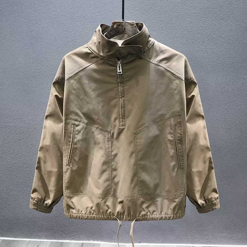 レトロな工装突撃服男性コート男性春秋ゆるい頭立襟ジャケットの外にカジュアルな防風服を着ている