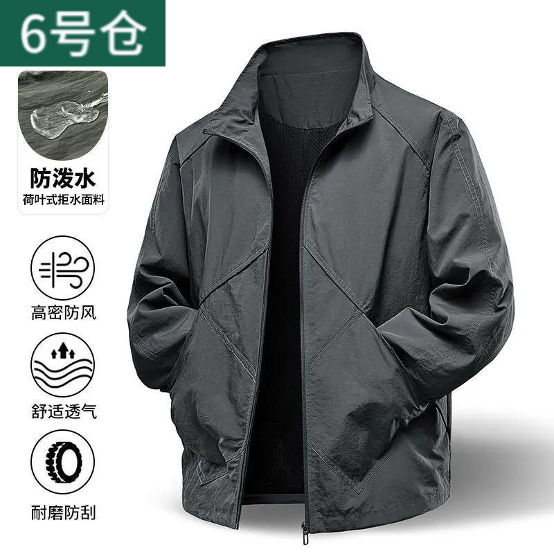 スポーツレジャーコート男性春秋アウトドア薄手ウインドブレーカー中年防風防水百合フード付きジャケット男