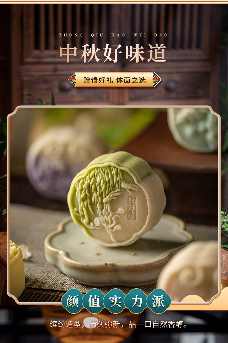 宋隠グラデーション桃山皮流心月餅軟心天地蓋包装デスクトップ国潮中国式菓子中秋月餅
