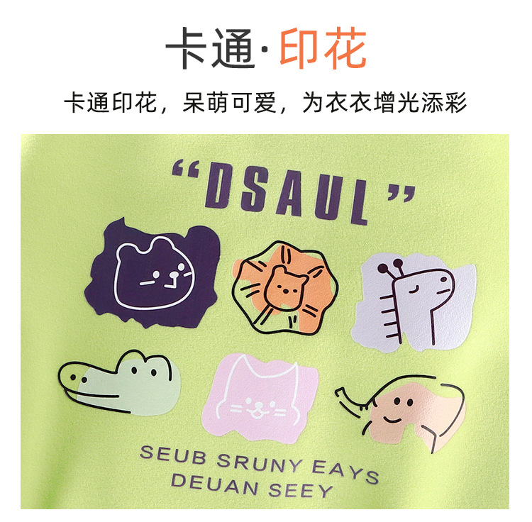 女の子用純綿トップスセット、安全服、子供用ホームウェア、エアコン服、パジャマ、漫画柄