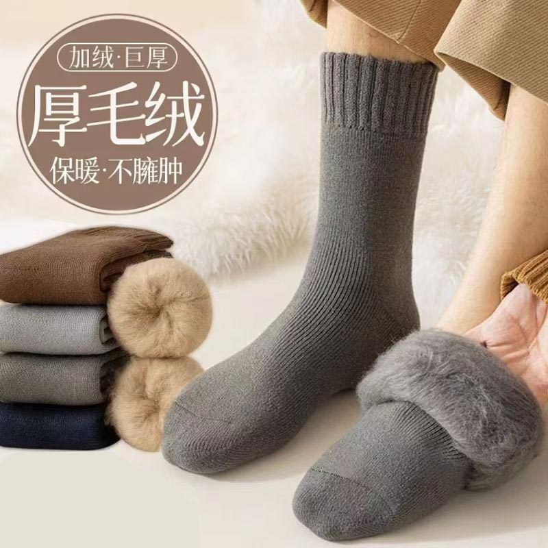 超厚袜子男士冬天保暖拉绒袜加绒加厚东北抗寒绒毛老年人睡眠长袜