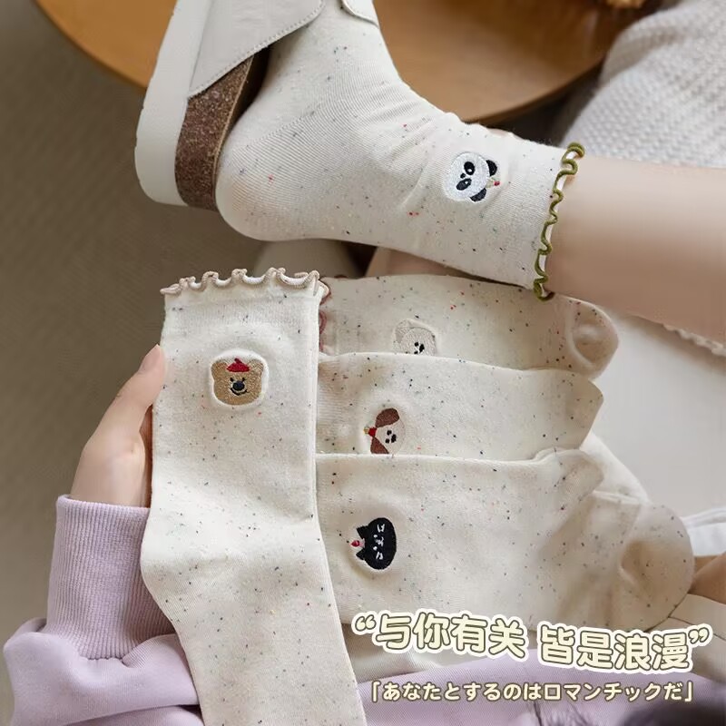 諸及び靴下の女性の中筒の靴下の山の靴下のかわいい漫画の熊の秋冬のレースのストッキングの月子の靴下の綿の靴下の卸売り