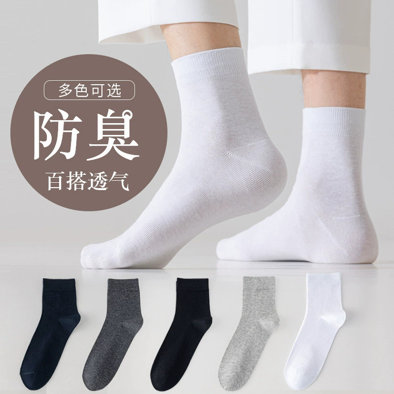 諸暨靴下卸売 黒白グレー無地ミドル丈靴下 秋用 防臭 メンズショートソックス 使い捨て靴下