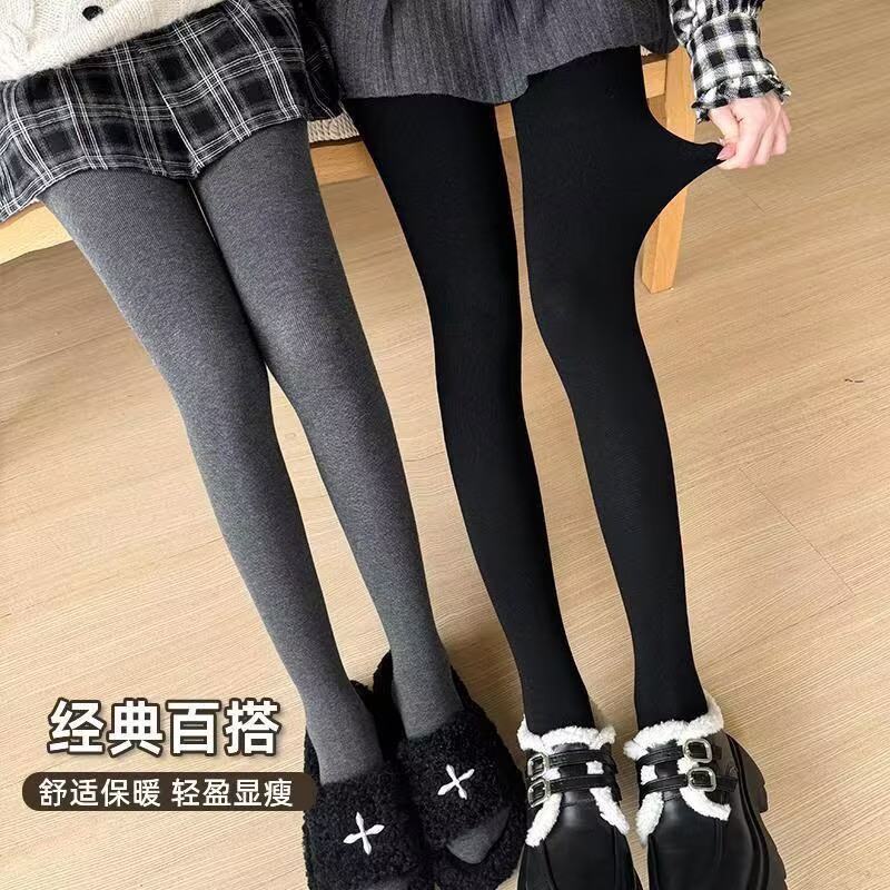 秋冬款加绒加厚螺纹棉竖条纹打底裤外穿踩脚保暖裤女士连脚一体裤
