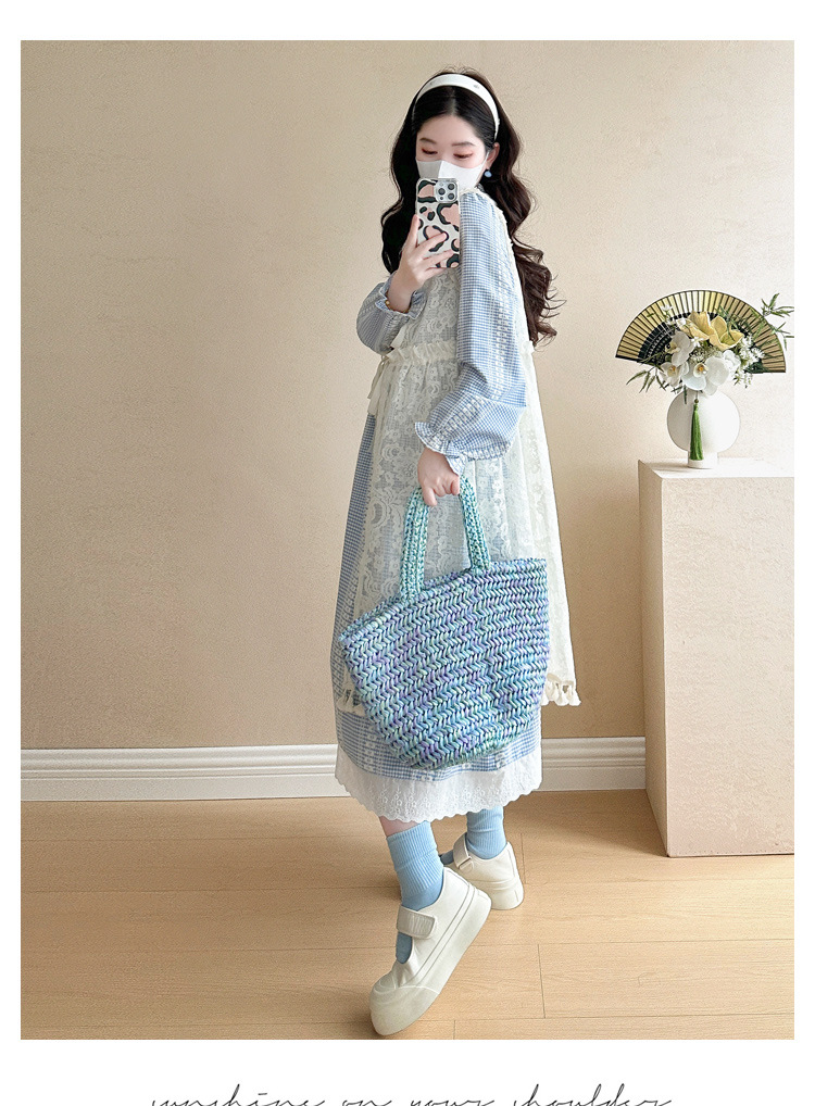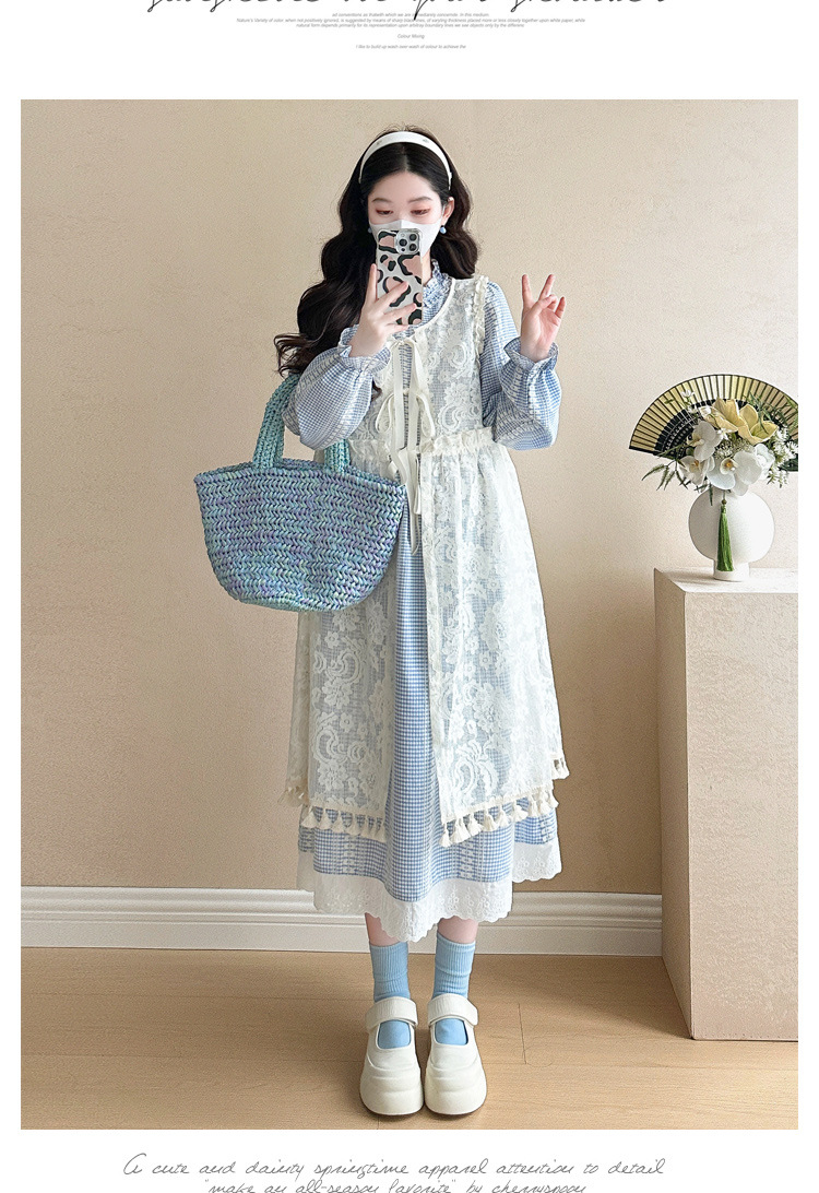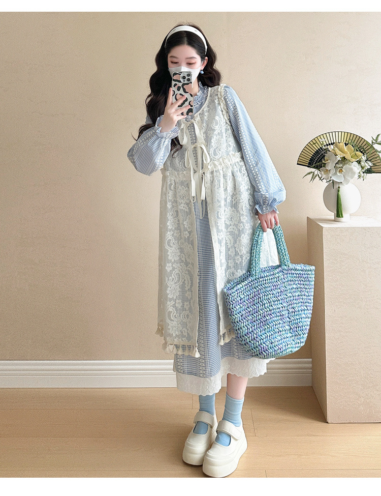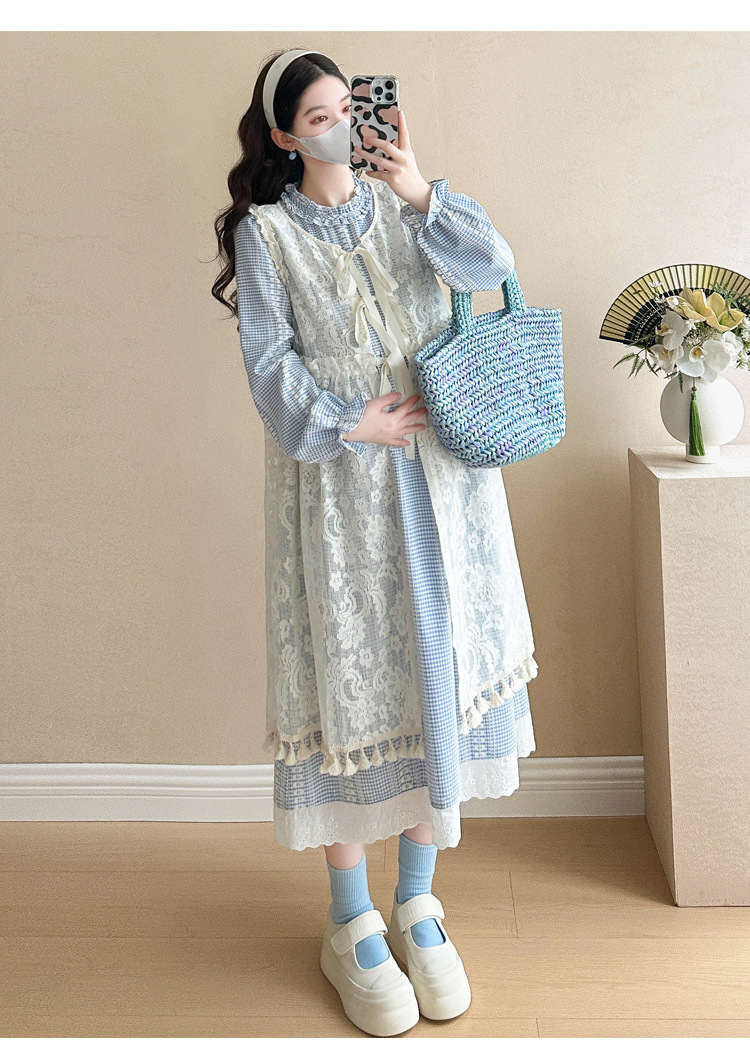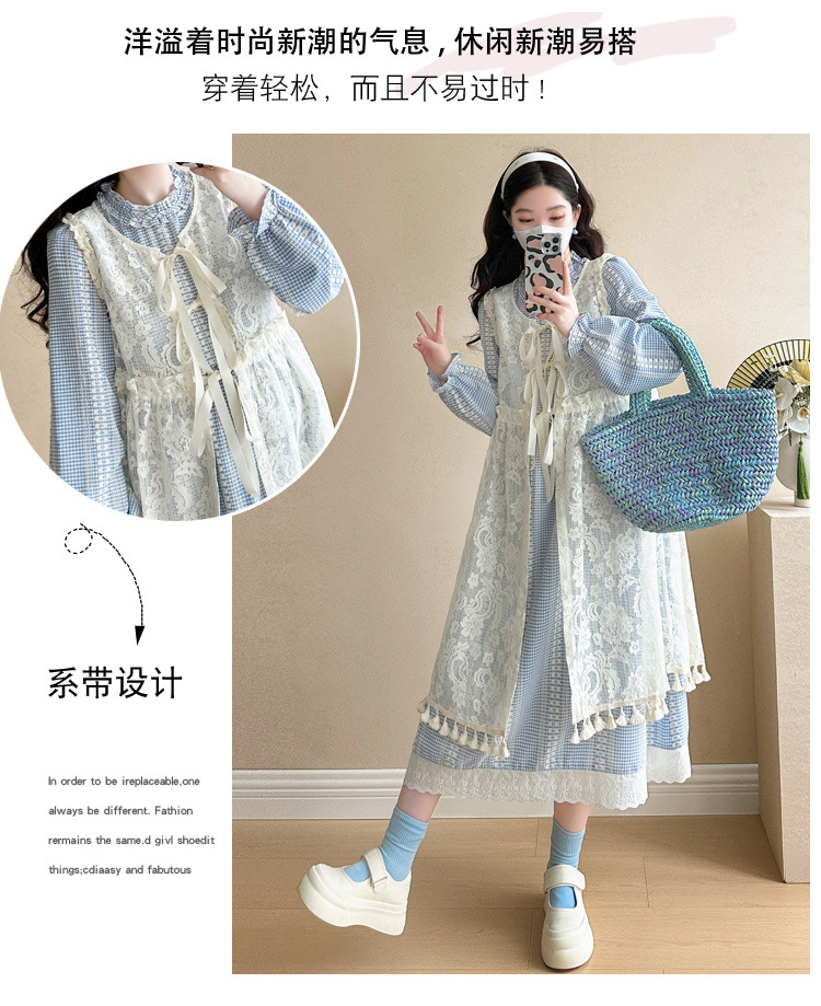現物妊婦服丸襟長袖シャツワンピース女性2024初秋痩せa字気質長スカート