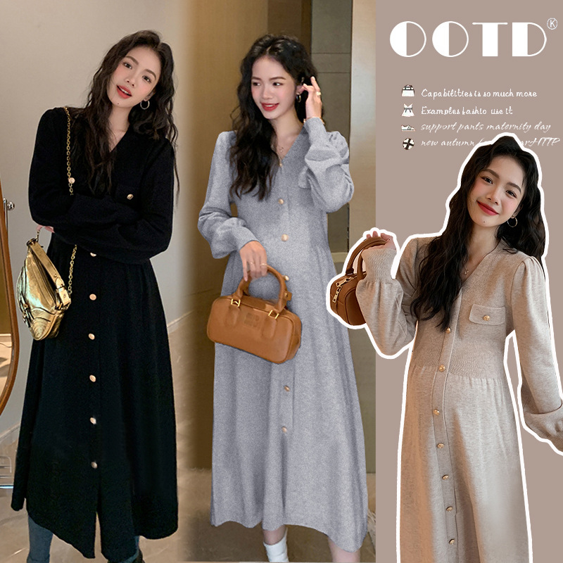 現物妊婦服秋冬新作妊婦ニットワンピースゆるいミディアムロング丈だらだら風秋妊婦スカート