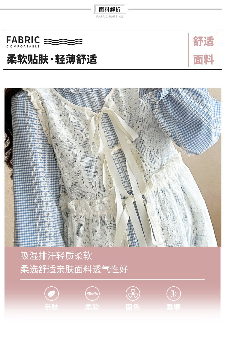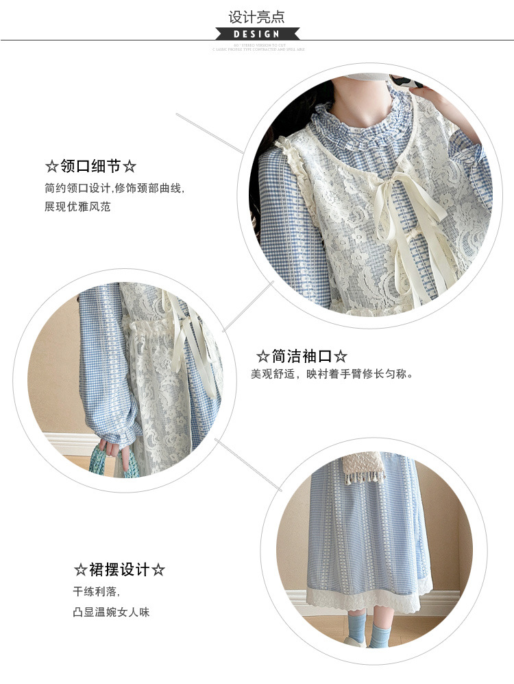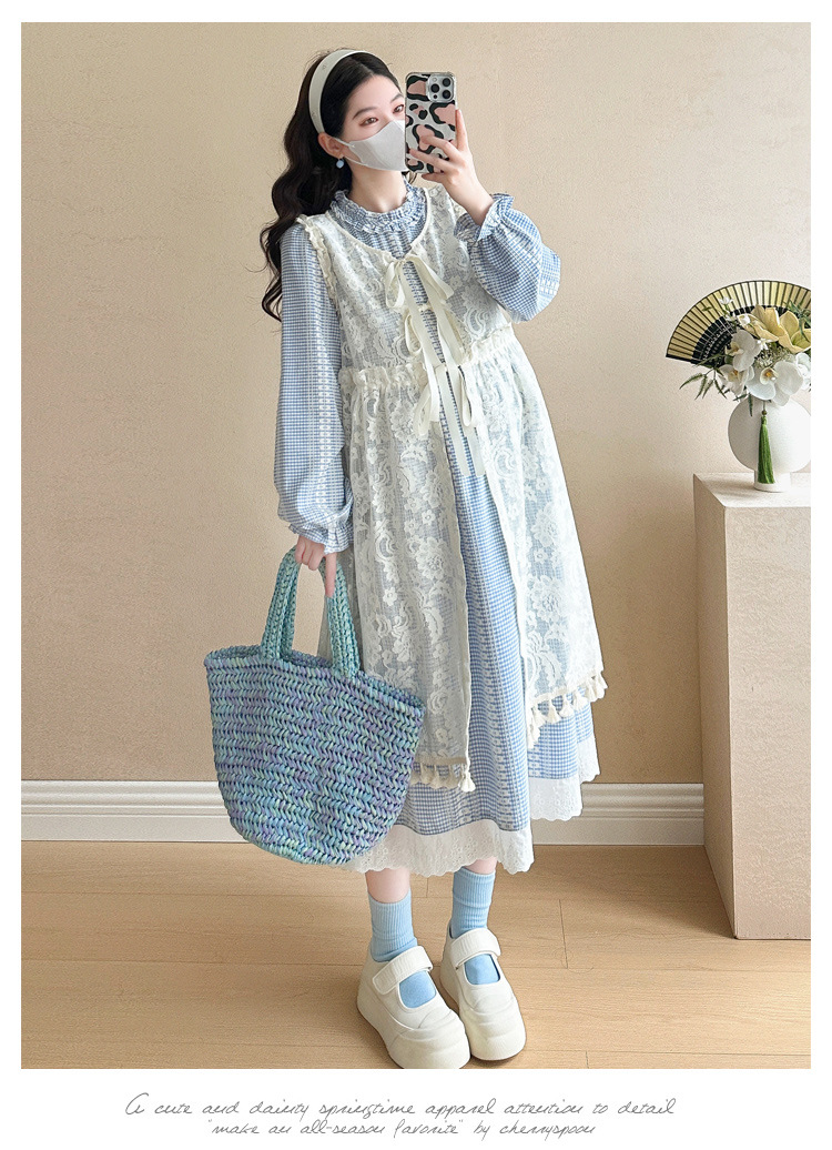 实拍 新款蕾丝拼接牛仔裙流苏装饰减龄宽松背带裙+杏色衬衫
