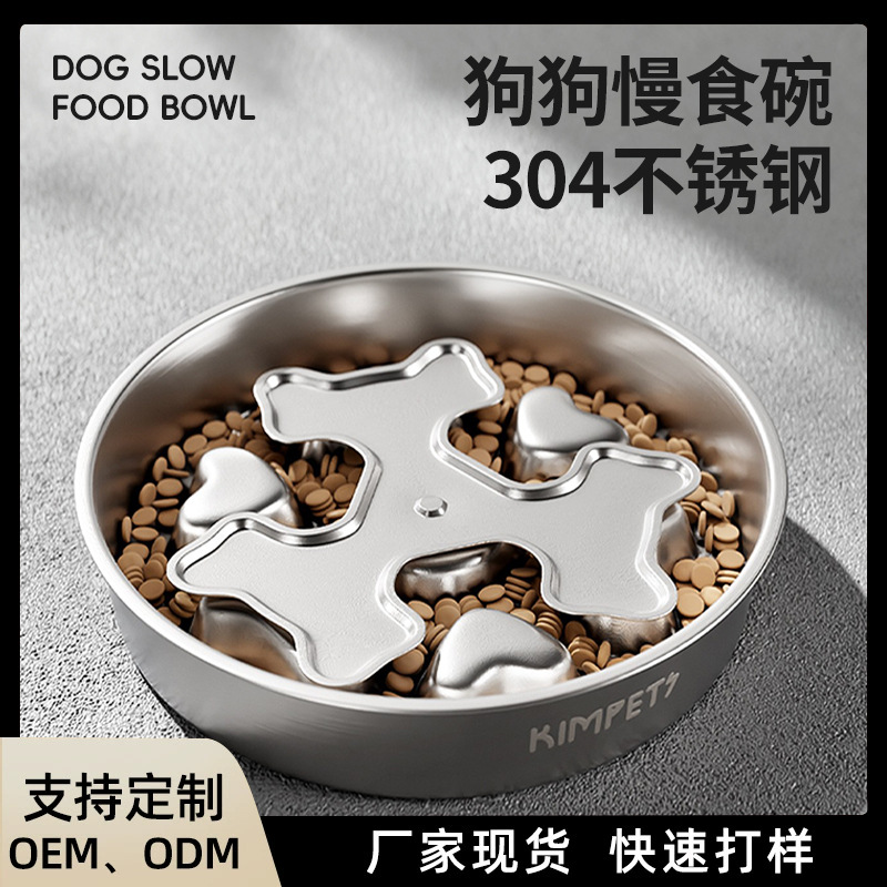 狗狗慢食碗304不锈钢中大型犬防打翻缓食盆防噎狗碗狗食盆大容量