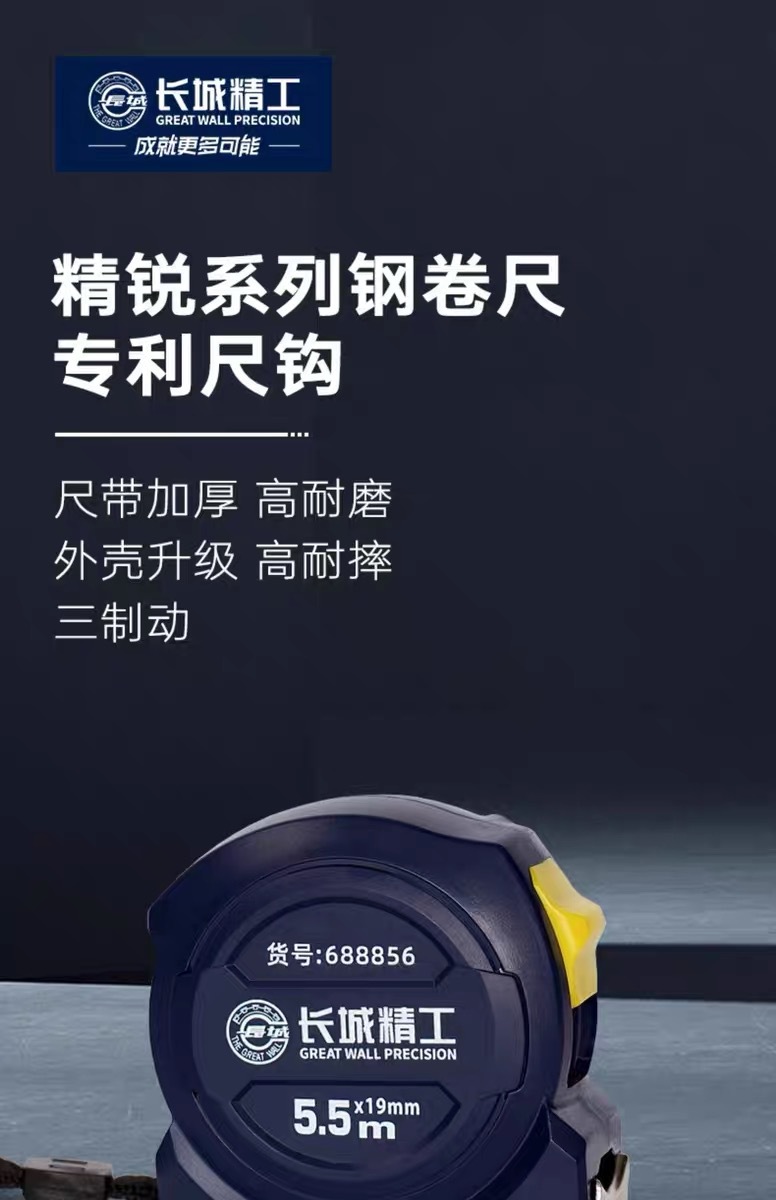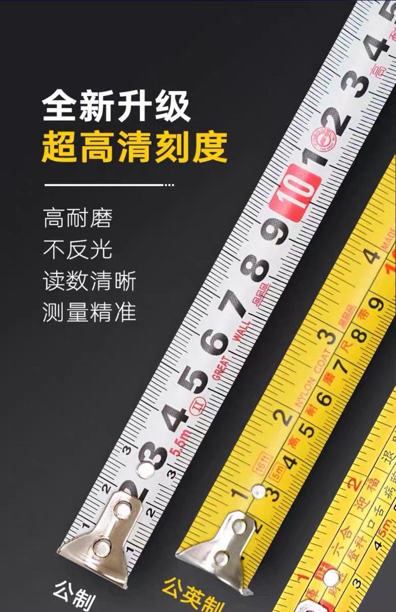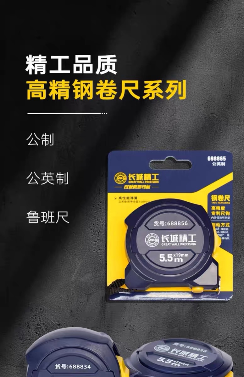 長城精工高炭素鋼巻尺多機能三制動公制インチ製魯班尺厚さ88シリーズ物差し