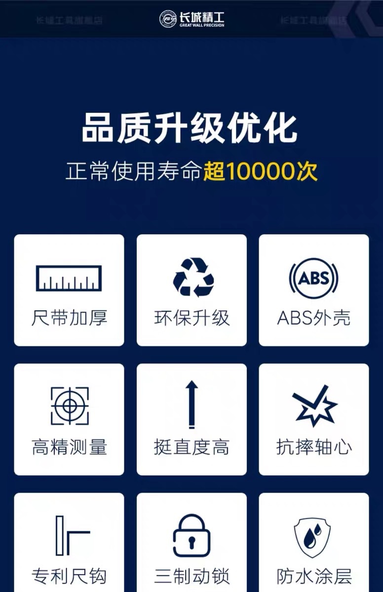 長城精工巻尺5メートル高さ精度2メートル3メートル7.5メートル10メートル厚さ耐磨耗巻尺鋼巻尺卸売り