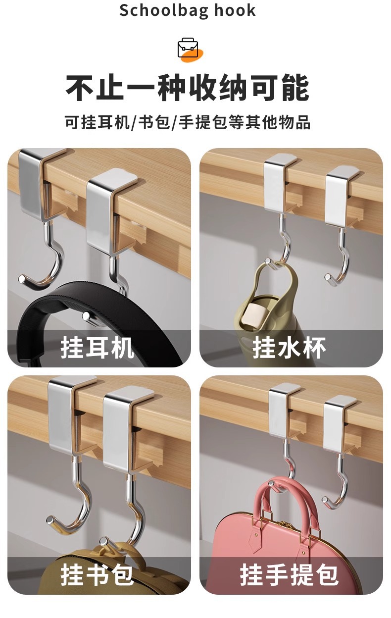 可移动书包挂钩办公新款课桌书包家用宿舍免打孔挂式加厚桌边挂钩
