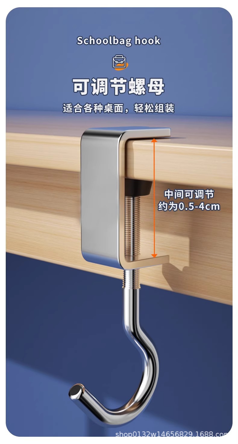 学生书包挂钩桌边挂书包可移动挂钩桌边挂式可调节可拆卸家用移动