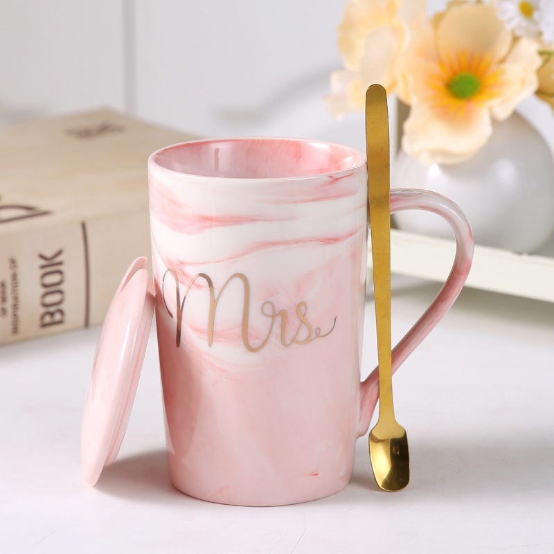 ホット贩売大理石のカップル创造的な水饮みカップセラミック家庭用カップマグカップコーヒーカップ盖付きスプーン付きカップ