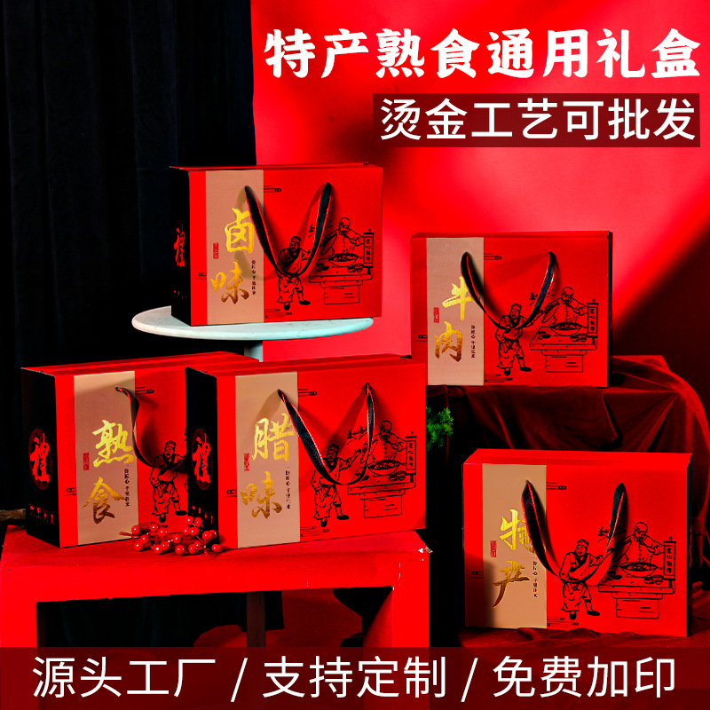 旧正月の年用品包装箱卸売り特産品熟食ベーコン味牛肉は人に箔押し箱の空き箱の現物を贈る