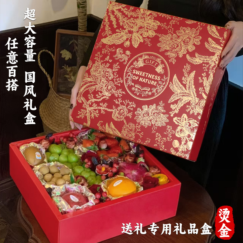 高級果物汎用ギフトボックス空箱包装ボックス正方形大容量箔押し国風ギフトボックス現物卸売り